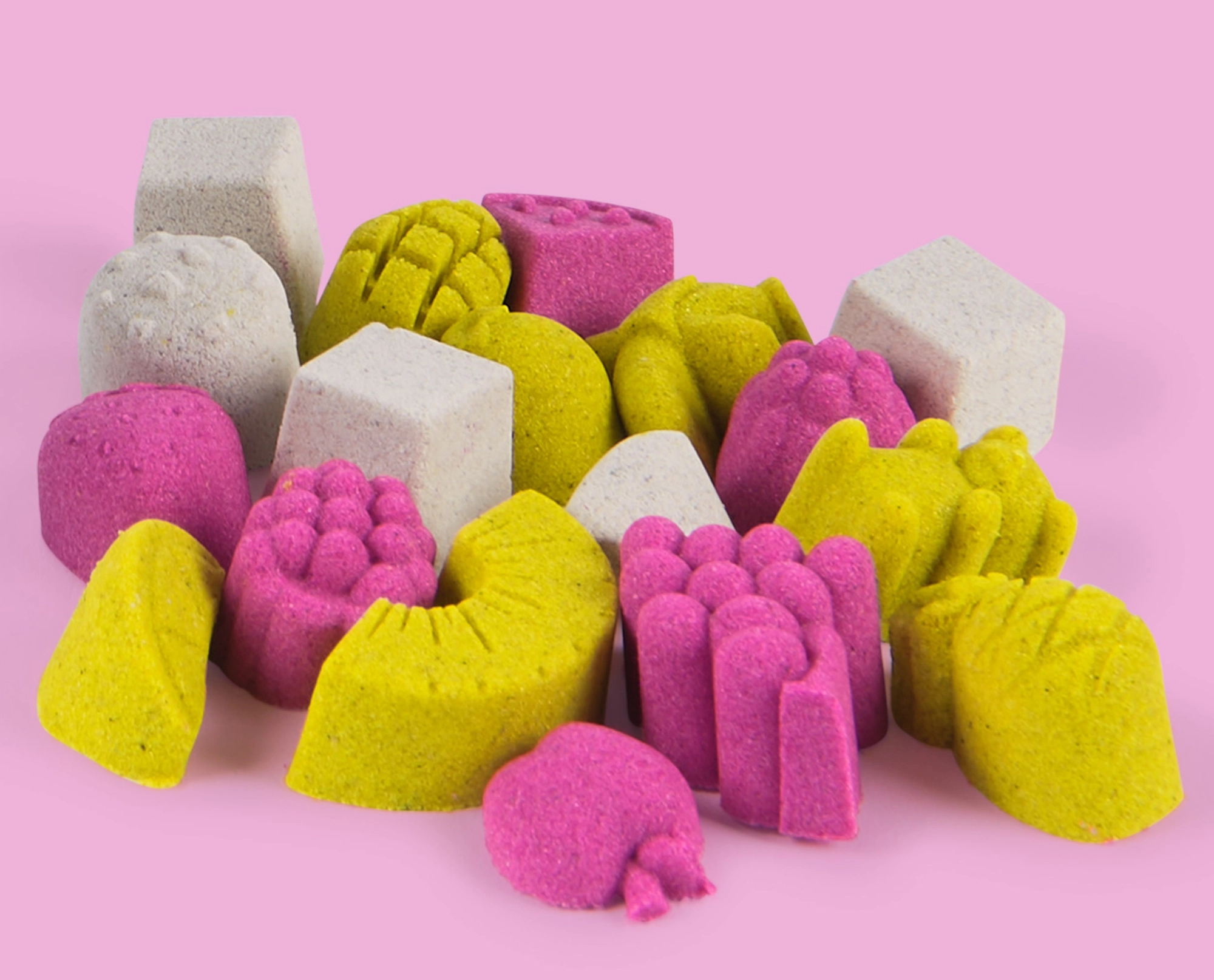 Kokybiškas smėlis idealiai atkartoja formelių detales, todėl vaikai lengvai kuria formas, glaistus ir priedus. Žaidimas skatina vaidybinius scenarijus (konditerija, virtuvė, ledainė), smulkiąją motoriką ir sensorinį suvokimą.