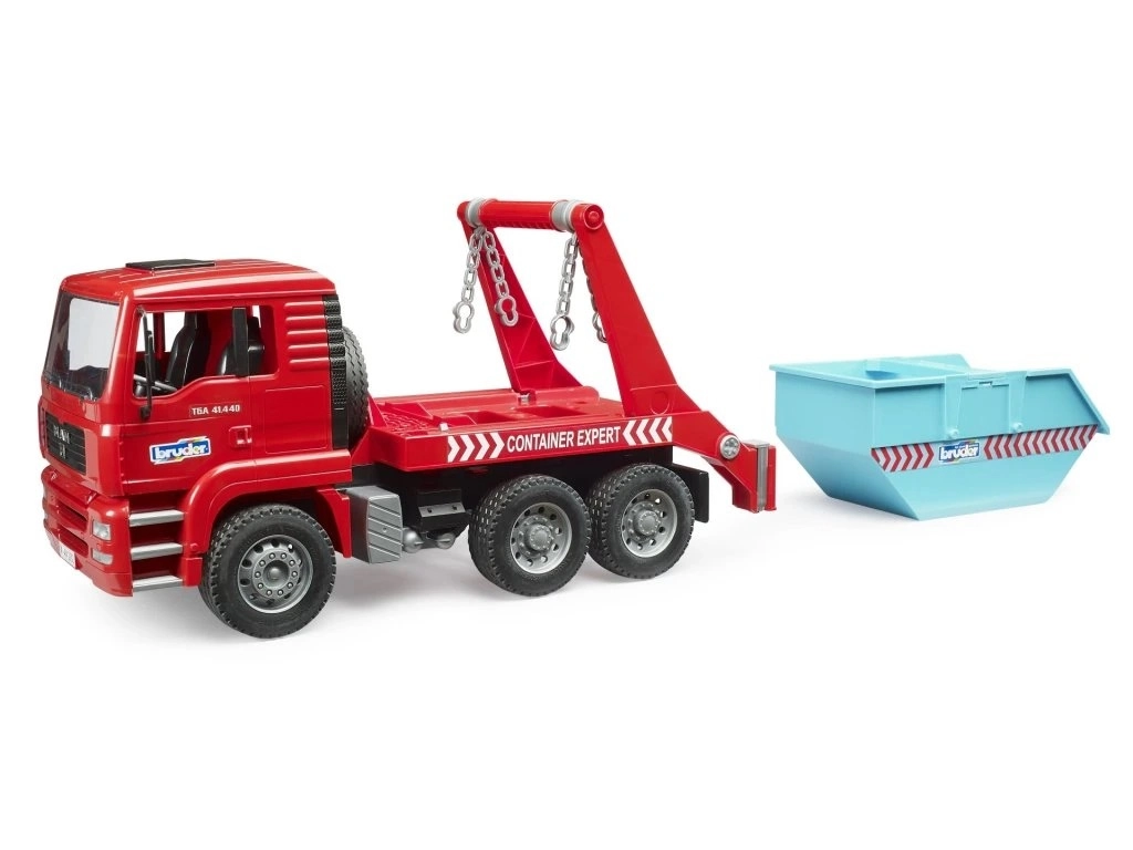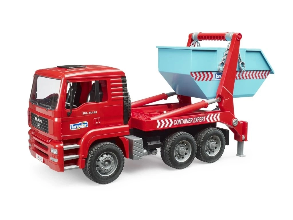 Šis detaliai sukurtas MAN TGA modelis į vaikų pasaulį atneša tikrųjų komercinių transporto priemonių autentiškas funkcijas. Konteinerį galima užkrauti ir iškrauti vienu judesiu, grandines atlaisvinti, o krovinį saugiai padėti vietoje. Pakeliama kabina atidengia variklio bloką ir skatina realistišką žaidimą.