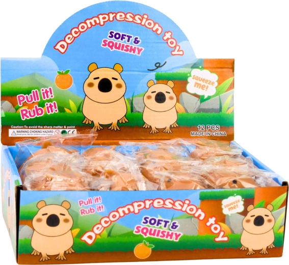 Antistresinis žaislas kapibaros formos pagamintas iš minkštos ir elastingos squishy medžiagos, kuri maloni liesti ir puikiai spaudosi, gniaužosi bei tempiasi. Paspaudus trumpam deformuojasi, o vėliau lėtai grįžta į pradinę formą, kas veikia raminančiai ir atpalaiduojančiai.