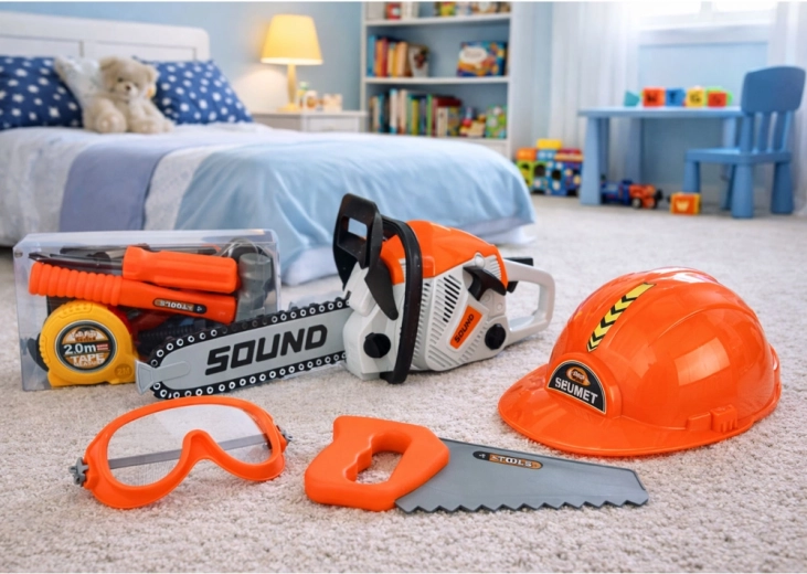 Didelis vaikiškas įrankių rinkinys mažiesiems meistrams siūlo realistišką profesijų žaidimą su motoriniu pjūklu su garso efektais, apsauginiu šalmu ir akiniais bei kitais įrankiais. Skatina kūrybiškumą, smulkiąją motoriką ir rankų–akių koordinaciją, o saugi konstrukcija ir lengvos medžiagos užtikrina patogų ir ilgalaikį žaidimą namuose ir lauke.