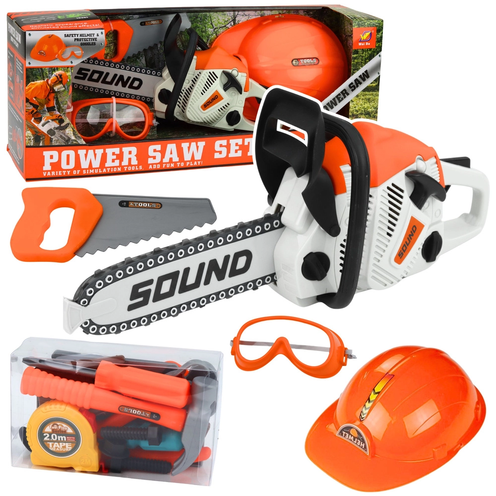 Šis apgalvotas rinkinys leidžia vaikams mėgdžioti suaugusiuosius atliekant sodo darbus ir smulkius taisymus. Pagrindinė atrakcija – žaislinis motorinis pjūklas su besisukančia grandine, garsais, rankiniu starteriu ir įjungimo mygtuku, kuris ištikimai atkuria tikrą įrankį – tačiau saugioje, vaikams pritaikytoje formoje.