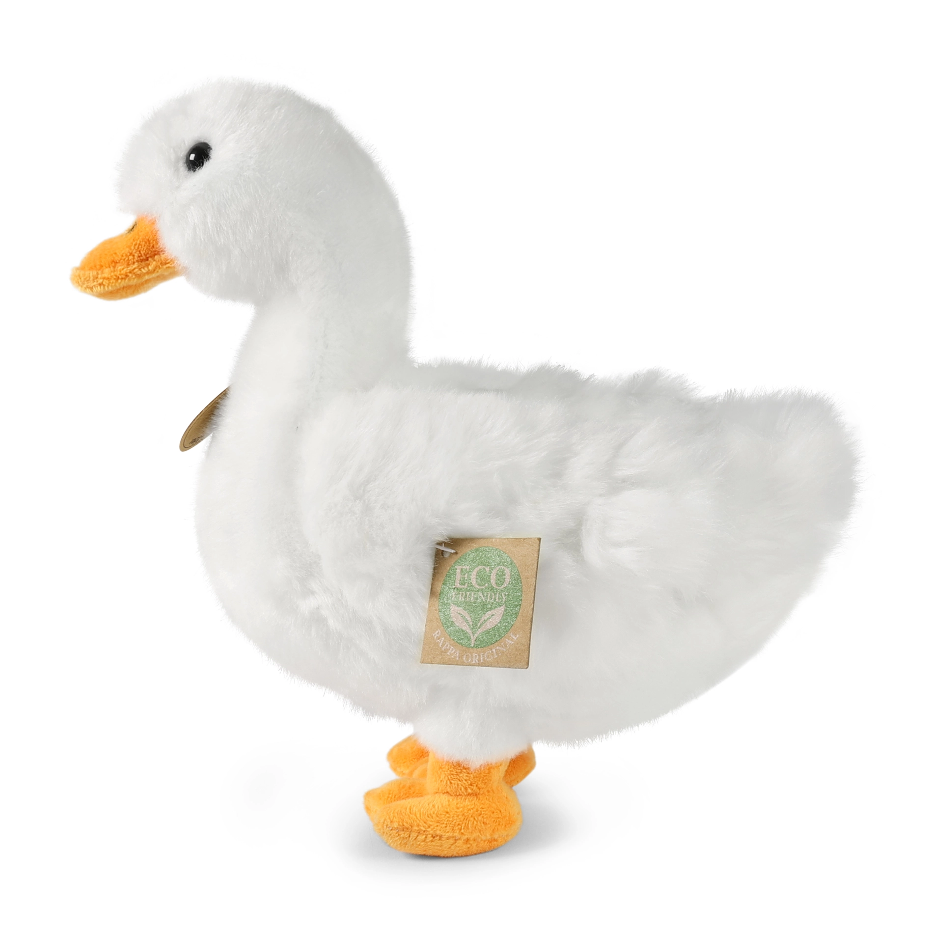 Mielas baltas 24 cm dydžio pliušinis ančiukas iš premium RAPPA kolekcijos pagamintas iš kokybiškų ir aplinkai draugiškų ECO medžiagų. Dėl rankų darbo atrodo lyg tikras, yra itin minkštas ir švelnus glostyti, o saugi užpildas iš perdirbtų PET butelių tinka net paties mažiausiems nuo gimimo.
