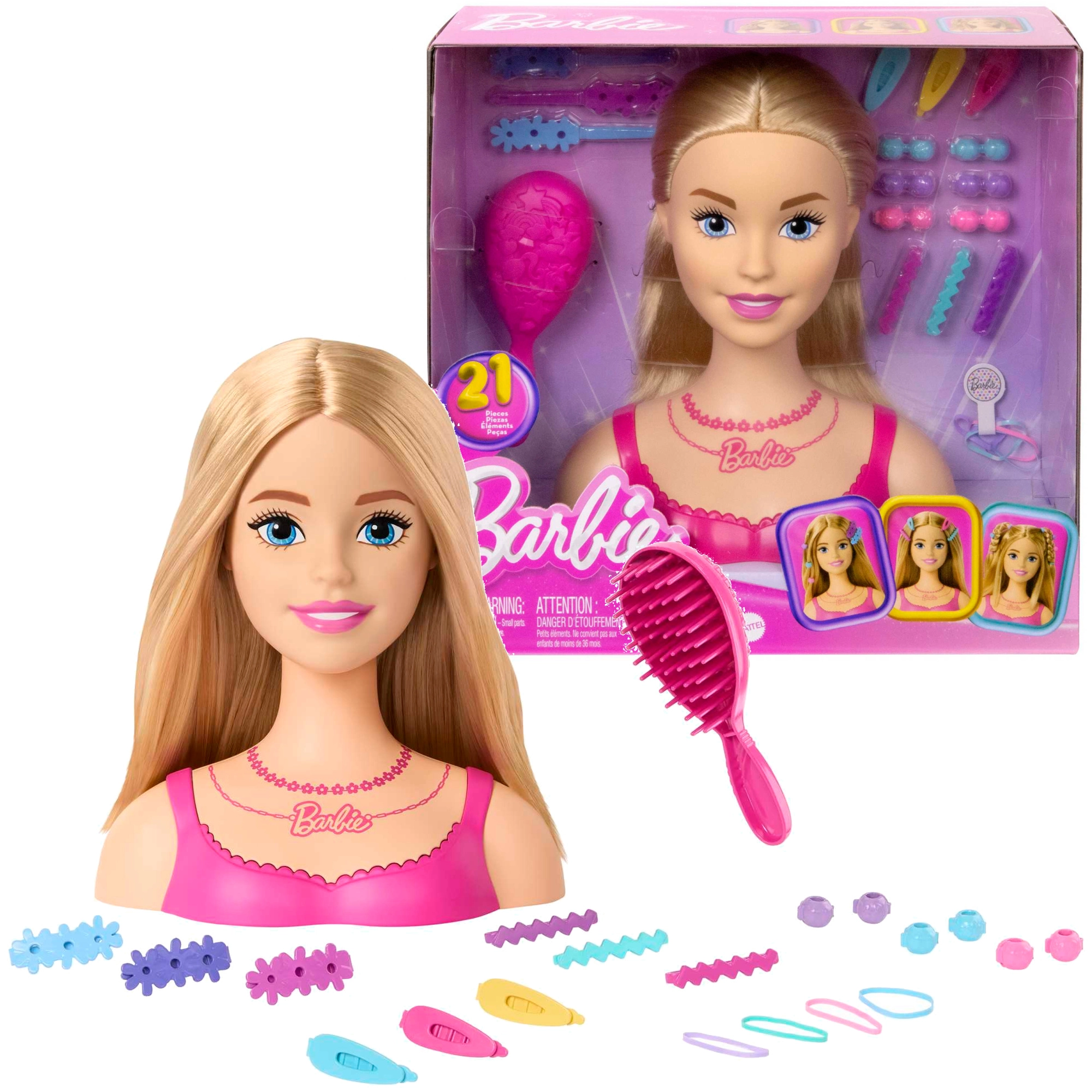 Formavimo galva BARBĖ su ilgais šviesiais plaukais – ideali mažosioms kirpėjoms ir stilistams. Dėl įvairių priedų vaikai gali kurti nesuskaičiuojamas šukuosenas – paprastus arklio uodegos kuodelius, pintas kasytes ir žaismingas puošnias kompozicijas. Pridėtas šepetys leidžia lengvai iššukuoti ir paruošti plaukus tolesniam formavimui.
