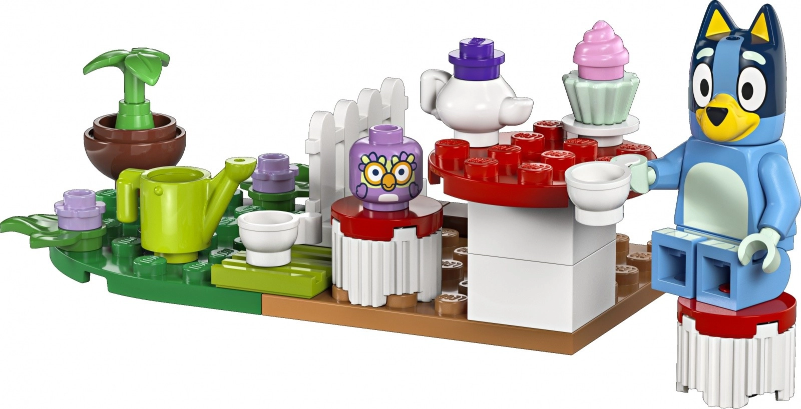 Dėl paprasto surinkimo ir priedų vaikai lengvai įsitrauks į žaidimą – nuo arbatėlės vakarėlio iki gėlių laistymo sode. Rinkinys lavina smulkiąją motoriką, kūrybiškumą ir vaidmeninius žaidimus su mylima heroje BLUEY.