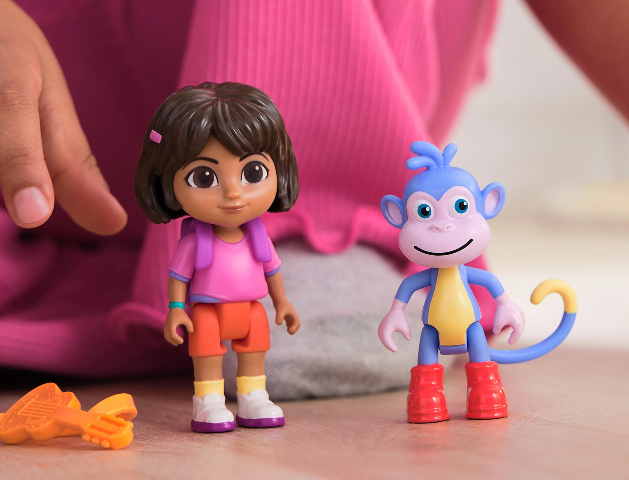 Rinkinyje yra judančios Doros ir beždžionėlio Bučio (Boots) figūrėlės bei ikoniškas kuprinėlis. Idealu serialo scenoms ir savo nuotykiams atkurti.