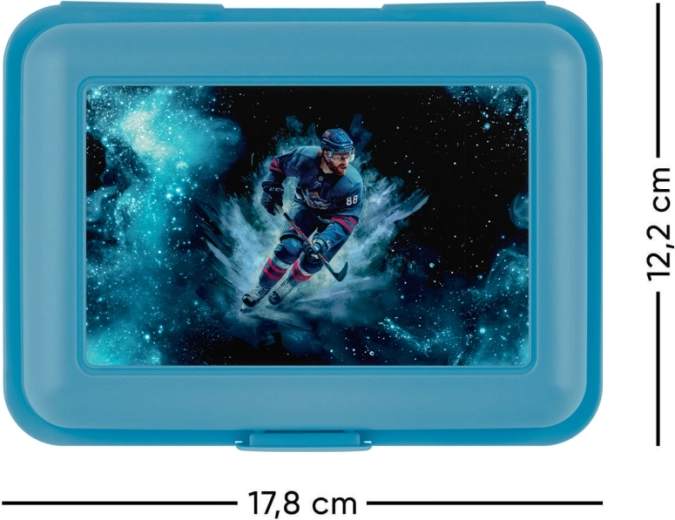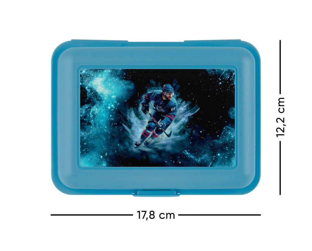 Praktiška priešpiečių dėžutė mažiems ir dideliems sportininkams. Mėlynos spalvos, su Ledo ritulio motyvu, turi vieno skląsčio saugų užsegimą ir skiriamąją pertvarą tvarkingam maisto sudėjimui. Patvari plastikinė konstrukcija kasdieniam naudojimui.