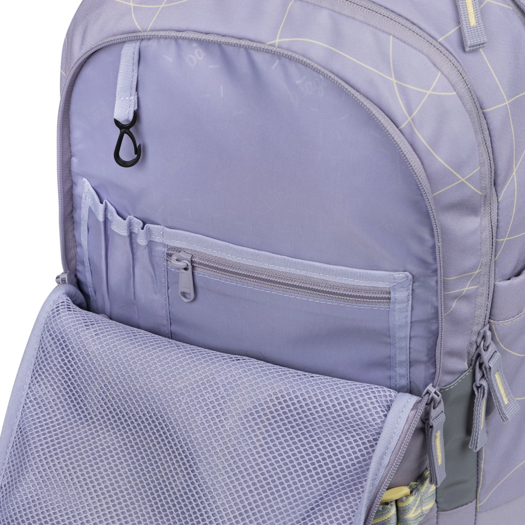 Trijų skyrių išdėstymas su aiškiu organizatoriumi, aksominė kišenė nešiojamajam kompiuteriui ar planšetei ir praktiški dvipusiai YKK užtrauktukai užtikrina greitą prieigą ir saugų mokyklinių reikmenų bei elektronikos laikymą. Šoninės kišenės iš tvirtos medžiagos talpina gertuvę ir dera su kuprinės dizainu. Patvari, vandeniui atspari medžiaga su GRS sertifikatu ir ryškūs atšvaitiniai elementai didina saugumą ir draugiškumą aplinkai.