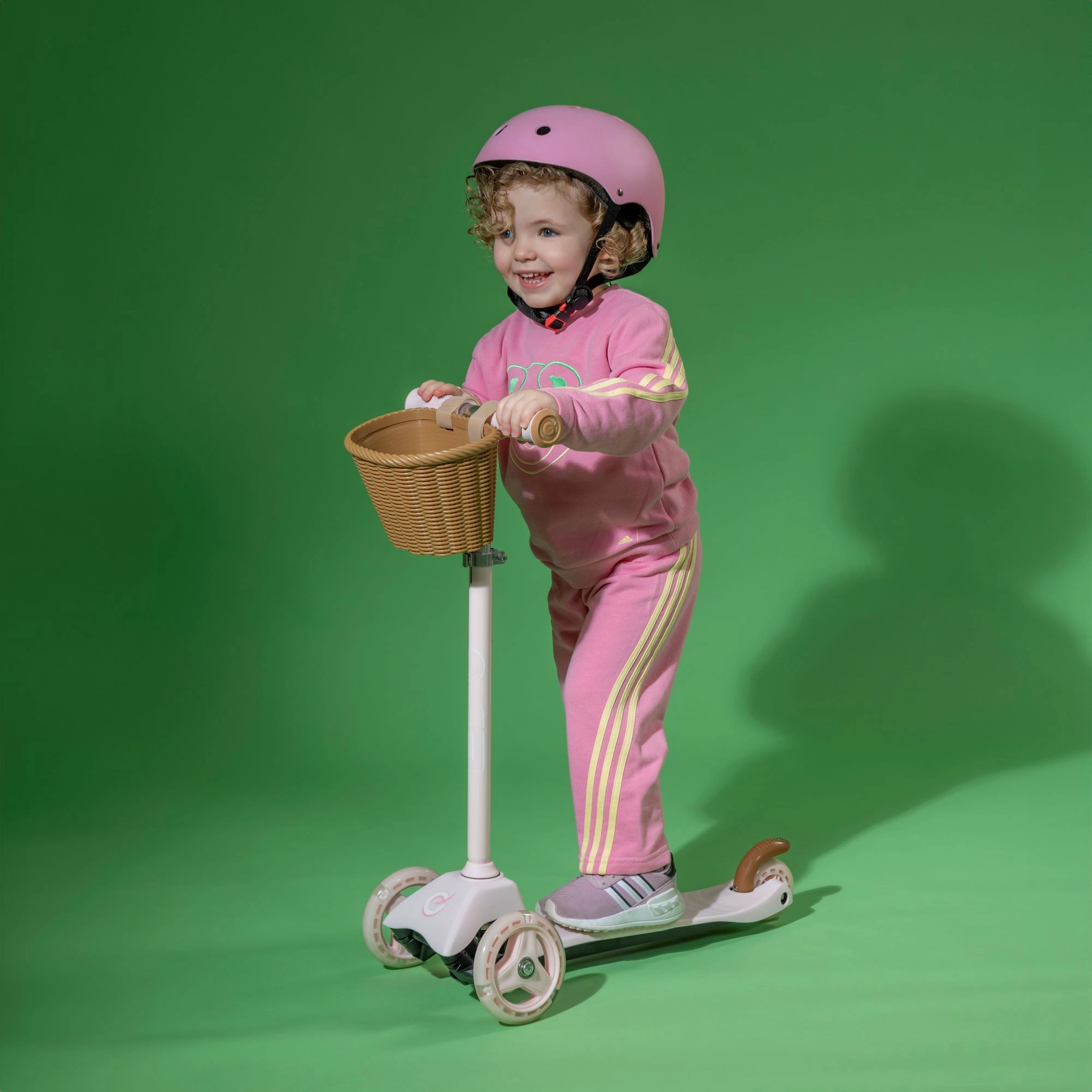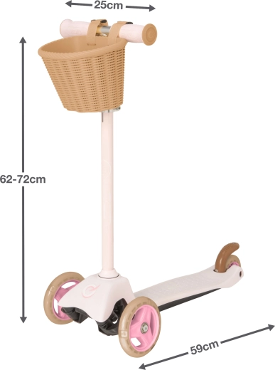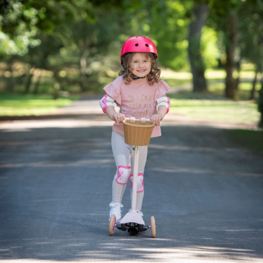 Praktiškas nuimamas krepšelis ant vairo leidžia pasiimti mėgstamas smulkmenas visur su savimi. Reguliuojamas vairo aukštis 62–72 cm ir lengva konstrukcija palengvina valdymą ir nešiojimą. Dėl patrauklios rožinės spalvos vaikai ją greitai pamėgs, o tėvai įvertins apgalvotas saugumo detales.