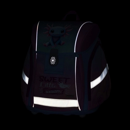 Stilingas mokyklinis rinkinys mažiesiems mokinukams su mielo aksolotlio motyvu apima palengvintą Premium Light kuprinę, sportinį maišelį ir vieno skyriaus penalą. Kuprinė pasižymi anatomiškai suformuota nugarėle, atsvaitiniais elementais saugumui, magnetiniu užsegimu ir tvirtu neperšlampamu dugnu su kojelėmis. Idealiai tinka patogiam ir tvarkingam mokyklinių reikmenų nešiojimui.