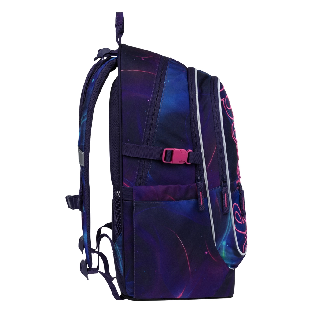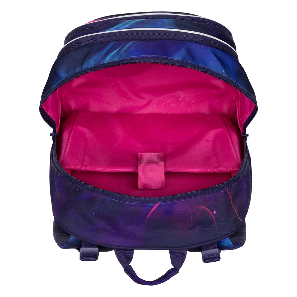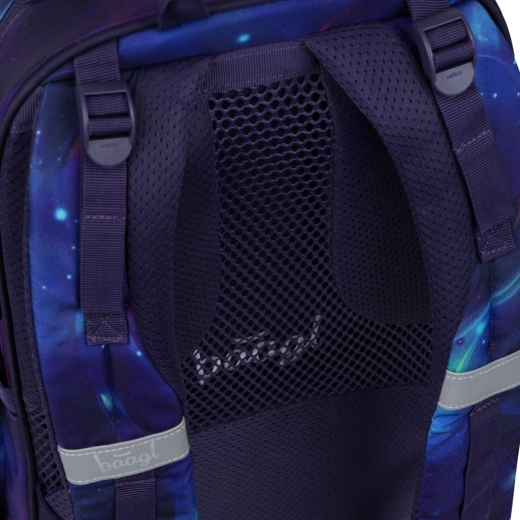 Anatomiškai suformuotas ventiliuojamas nugaros skydelis, paminkštintos ir reguliuojamos petnešos bei krūtinės dirželis užtikrina taisyklingą apkrovos paskirstymą visą mokyklos dieną.