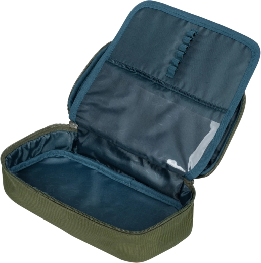 Rinkinį papildo erdvus penalas su dviguba atverčiama sklende ir kišene, sulankstomas sportinis krepšys HOOP (apie 22 l, 170 g) su reguliuojamu diržu, juosmens rankinė smulkmenoms ir daugiafunkcis organizatorius/dėklas. Viskas vieningo Olive dizaino iš perdirbtų, patvarių medžiagų.