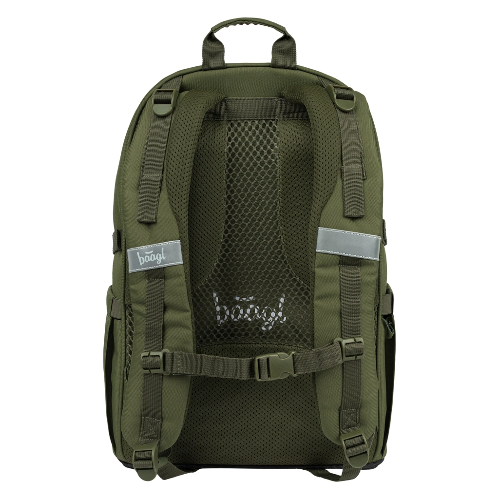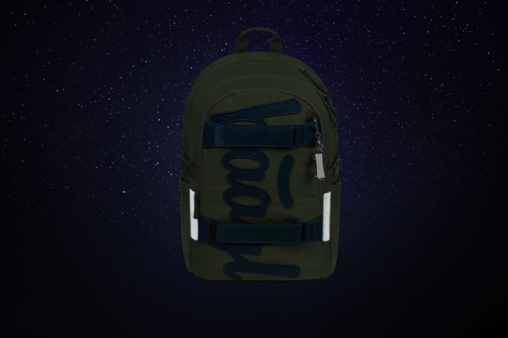 Praktiškas BAAGL Skate Olive mokyklinis rinkinys sujungia lengvą ir patvarią įrangą mokiniams nuo 3 klasės iki studentų. Rinkinį sudaro ergonominė kuprinė su riedlentės laikikliu, erdvus penalas, sulankstomas sportinis krepšys, juosmens rankinė ir dėklas/organizatorius priedams ar nešiojamajam kompiuteriui. Viskas pagaminta iš perdirbtų, vandeniui atsparių medžiagų su atšvaitiniais elementais ir patikimais YKK užtrauktukais, patvirtinta GRS sertifikatu.