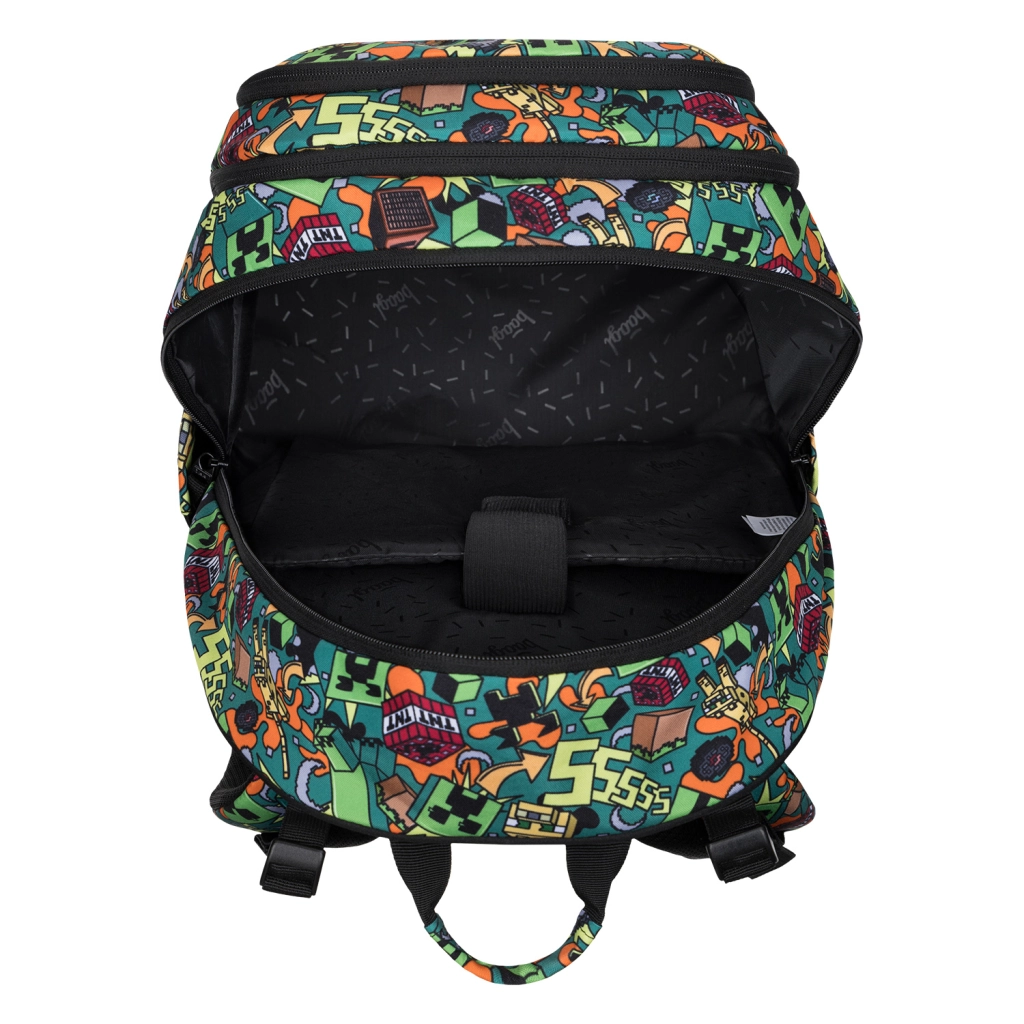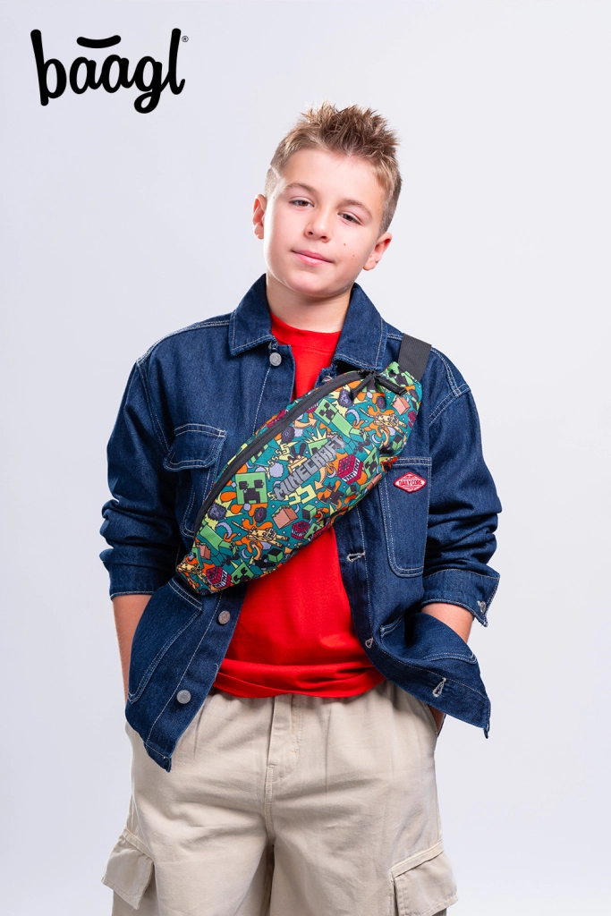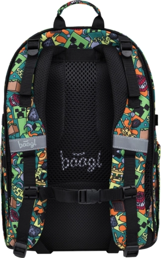 Mokyklinis rinkinys BAAGL Minecraft Chaos sujungia mėgstamą pikselių dizainą su funkcionalia įranga mokyklai ir laisvalaikiui. Lengva kuprinė Skate su talpiu organizavimu sutalpins mokyklinę įrangą ir turi paminkštintą 15" nešiojamojo kompiuterio kišenę, o penalas, maišelis ir juosmens krepšys papildys komplektą patogiu smulkmenų bei sporto reikmenų laikymu.