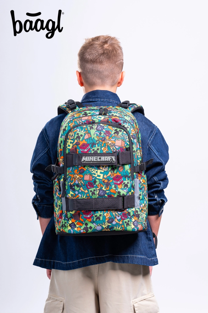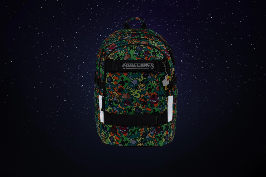 Dėl anatomiškai suformuotos nugarėlės, reguliuojamų diržų ir atšvaitinių elementų rinkinį saugu ir patogu nešioti. Visos dalys pagamintos iš vandeniui atsparios perdirbtos medžiagos ir naudoja patikimus YKK užtrauktukus ilgam tarnavimo laikui. Vieningu MINECRAFT motyvu paremtą dizainą lengvai suderinsite į vieną stilių.