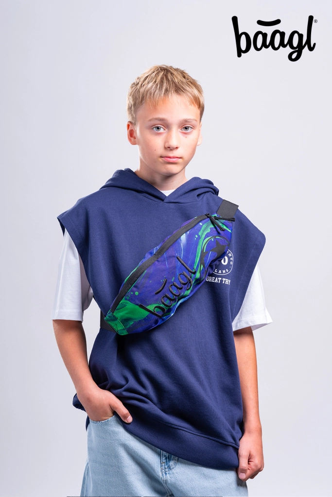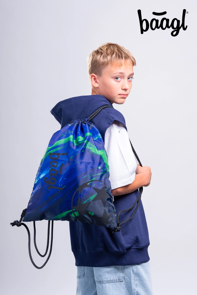 Pilna mokyklinė įranga vieningo sportiško dizaino: rinkinys BAAGL CORE FOOTBALL CHAMPION apima lengvą ergonominę kuprinę su 15" nešiojamojo kompiuterio kišene, erdvų penalą, praktinį batų maišelį, stilingą juosmens rankinę ir patvarų nešiojamojo kompiuterio dėklą. Pagaminta iš perdirbtų, vandeniui atsparių medžiagų su GRS sertifikatu, kokybiški YKK užtrauktukai ir saugūs atšvaitiniai elementai.