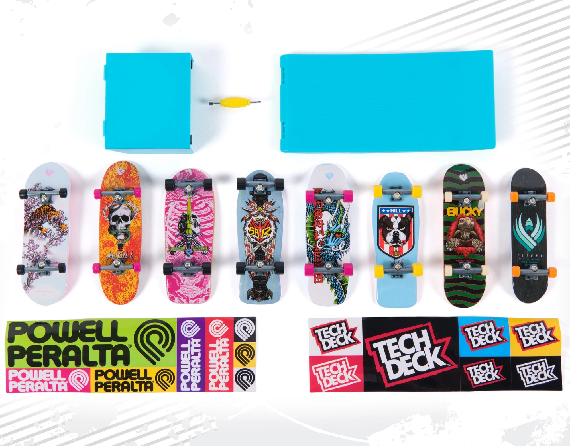 Rinkinyje taip pat yra surinkimo įrankis, lipdukai ir priedai dar geresniam pritaikymui. Fingerboardai puikiai tinka ir pradedantiesiems, ir pažengusiems – treniruokitės ollie, kickflip ir kitus triukus bet kada ir bet kur.