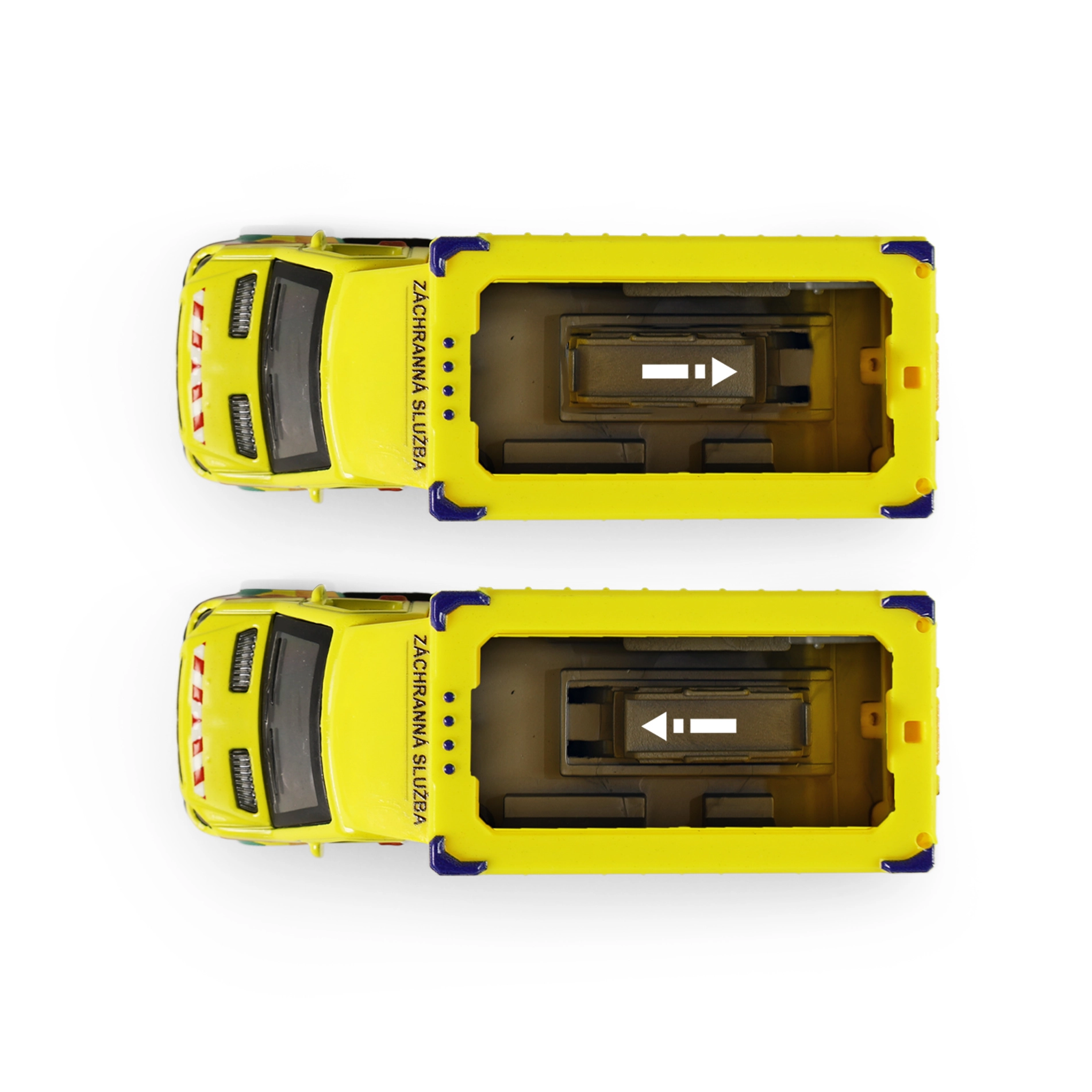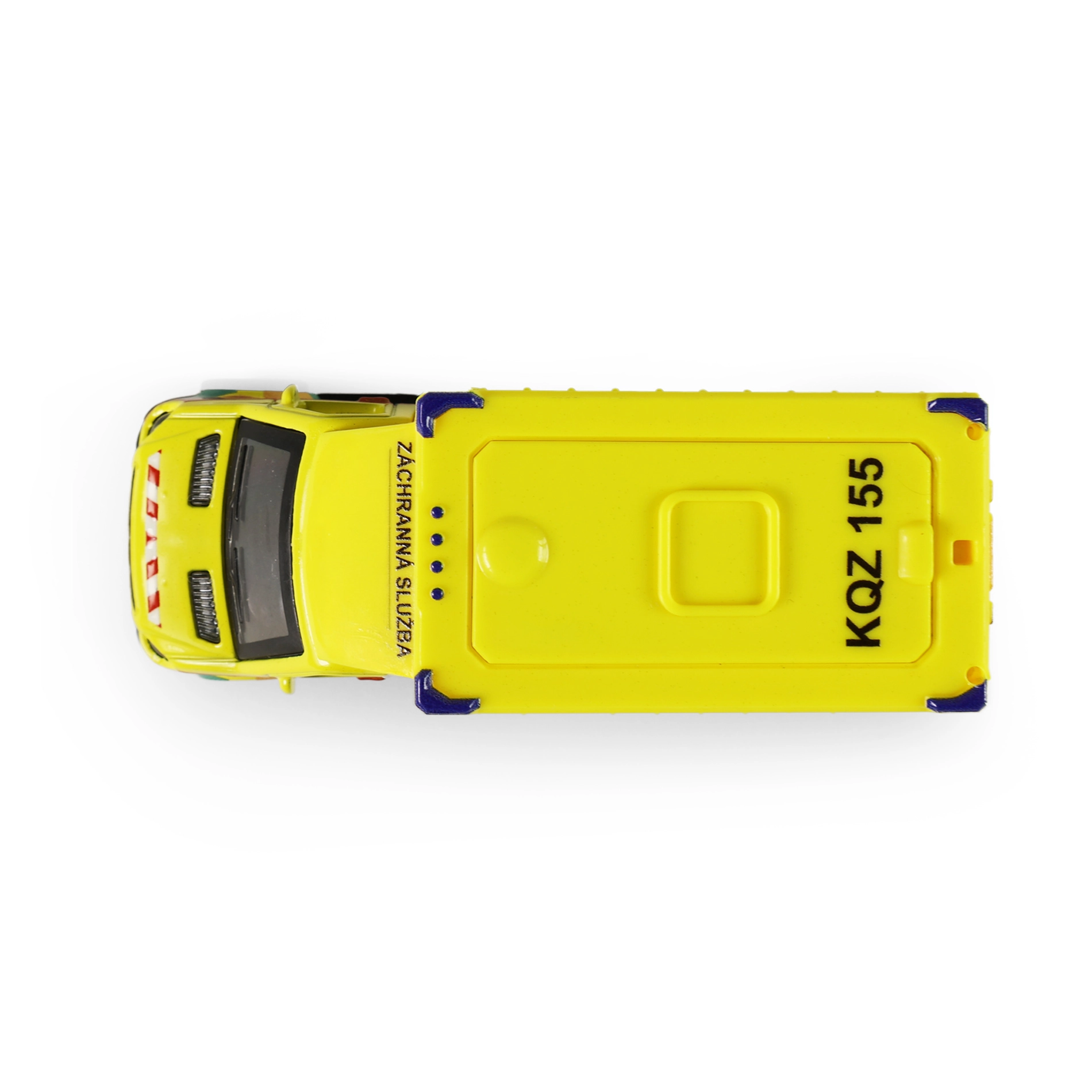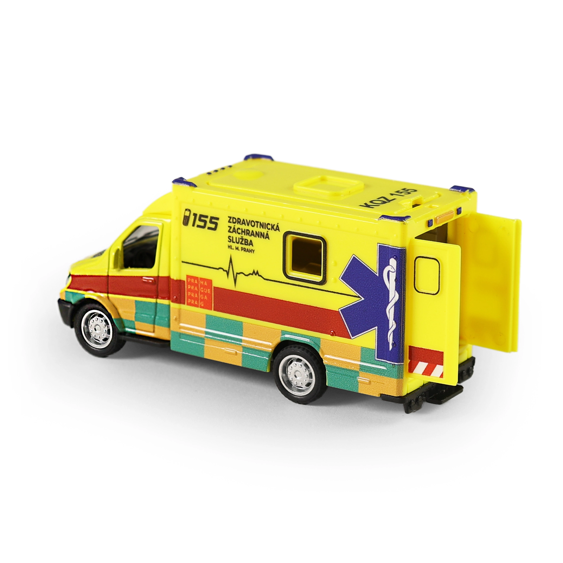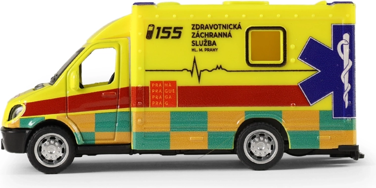 Dėl atbulinės eigos inercinės pavaros greitoji lengvai pajuda – idealiai tinka greitiems „iškvietimams“ vaikų žaidimuose. Oficialus dizainas, įkvėptas Prahos miesto greitosios medicinos pagalbos tarnybos, suteikia žaislui autentišką išvaizdą.
