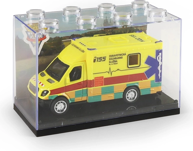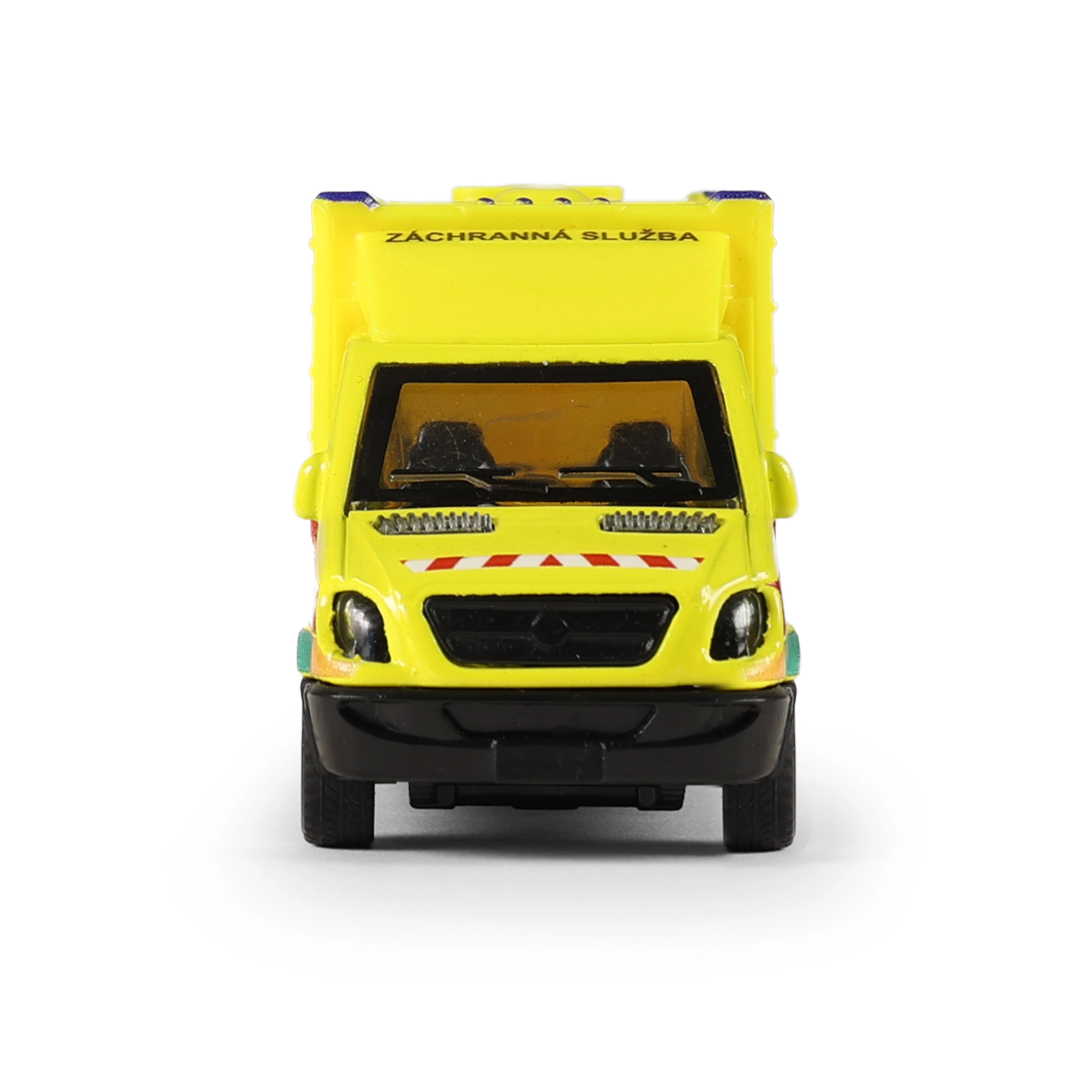 Gelbėjimas jau kelyje! Stilinga metaline greitosios pagalbos mašina, sukurta bendradarbiaujant su Prahos miesto greitosios medicinos pagalbos tarnyba, sužavės kiekvieną mažą gelbėtoją. Dėl atbulinės eigos inercinės pavaros tereikia mašinėlę patraukti atgal, paleisti ir misija, pilna nuotykių, gali prasidėti.