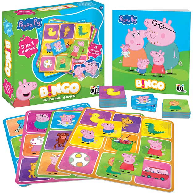Mėgaukitės šeimos pramoga su mėgstamais PARŠIUKO PEPOS personažais. Ši vaikiška bingo versija sukurta taip, kad būtų lengvai suprantama, greita ir kupina atradimo džiaugsmo. Dėl trijų žaidimo būdų vaikai nenuobodžiaus ir galės lavinti susikaupimą, dėmesį detalėms bei žaidimo strategiją.