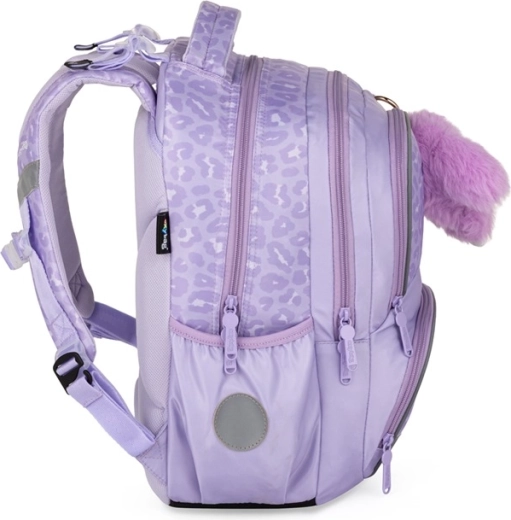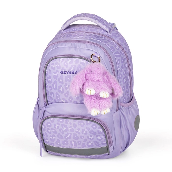 Praktiškas trijų dalių mokyklinis rinkinys OXY NEXT Bunny švelnios levandų spalvos derina erdvią kuprinę, didelį penalą ir lengvą maišelį sportinei aprangai. Kuprinė turi anatominės formos nugarą, paminkštintas pečių juostas ir krūtinės diržą patogiam ir taisyklingam nešiojimui. Ji siūlo daug kišenių ir tvarkyklę, šonines kišenes buteliui, raktų/čipo laikiklį ir atšvaitinius elementus saugumui. Sustiprintas neperšlampamas dugnas saugo turinį net prastomis oro sąlygomis.