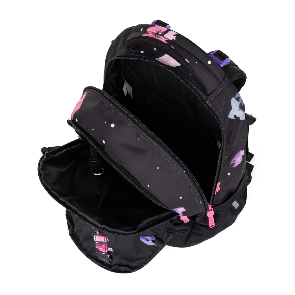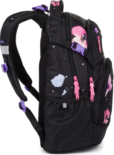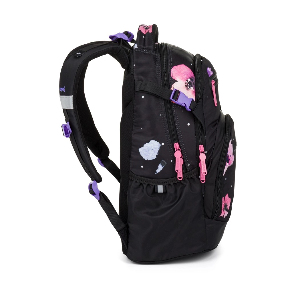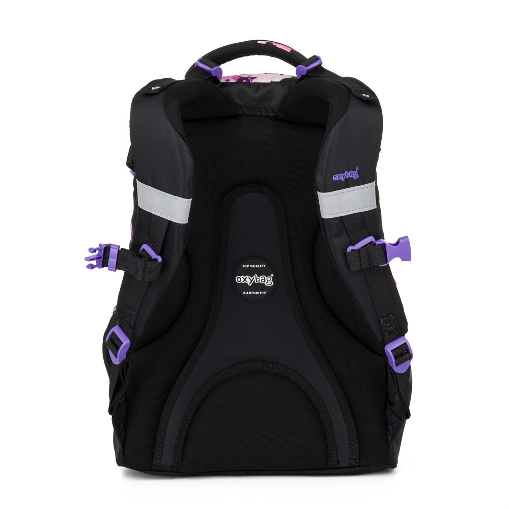 Mokyklinė kuprinė OXY Ombre Flowers sukurta patogiam kasdieniam nešiojimui nuo 3 klasės. Dėl ergonomiško nugaros skydelio (43 cm ilgio) ir minkštai paminkštintų petnešų puikiai prisitaiko prie vaiko nugaros. Reguliuojamas krūtinės dirželis laiko petnešas savo vietoje, o tvirtas, stabilus dugnas apsaugo nuo apvirtimo ir saugo turinį.
