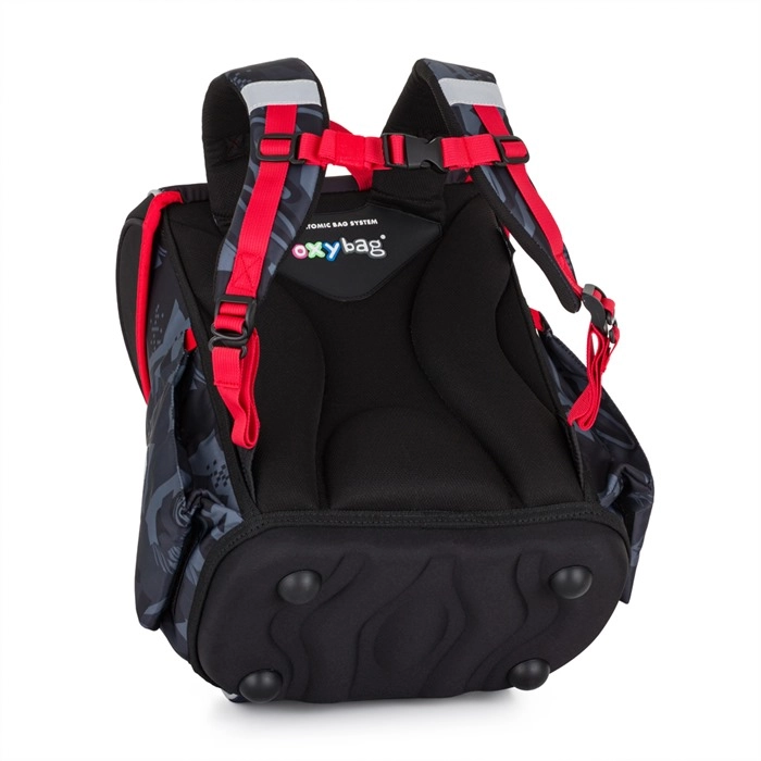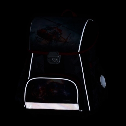 Premium mokyklinė kuprinė su gaisrininkų motyvu padeda išlaikyti taisyklingą laikyseną dėl anatomiškai suformuotos nugarėlės ir tvirtos vidinės įtempimo konstrukcijos, kuri palaiko pastovią formą. Kvėpuojantis paminkštinimas ir plačios minkštintos petnešos su galimybe idealiai sureguliuoti padėtį tolygiai paskirsto apkrovą ant vaiko pečių. Saugumą didina metalinė sagtis su atšvaitu ir gausūs atšvaitiniai elementai geresniam matomumui.