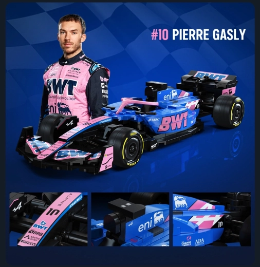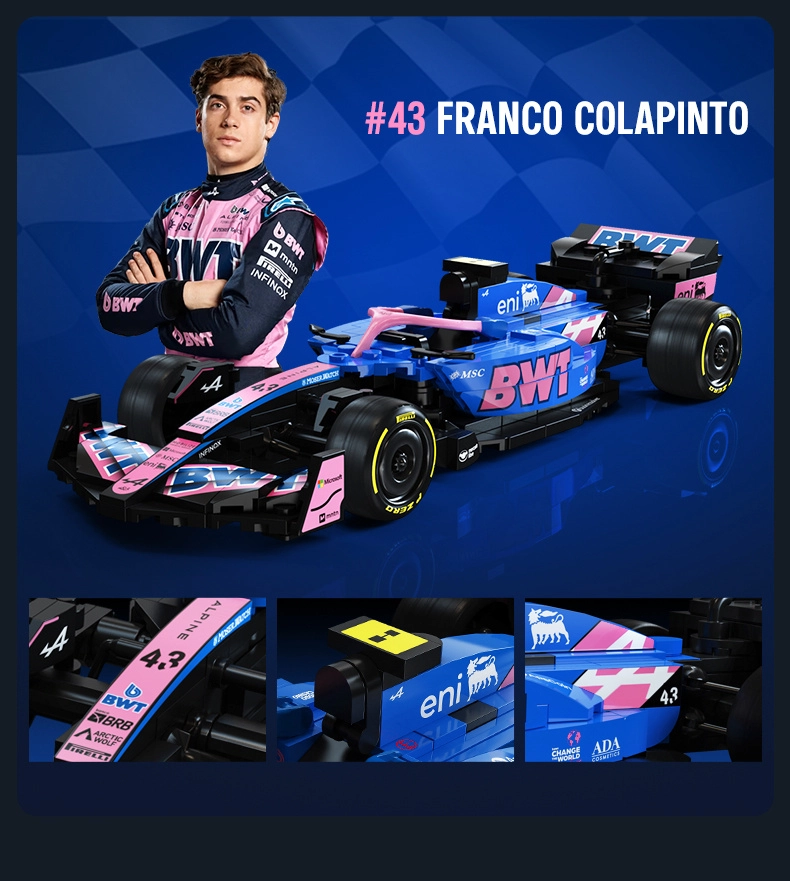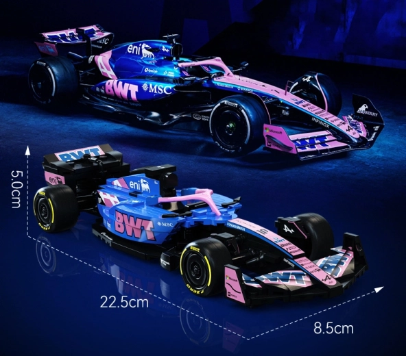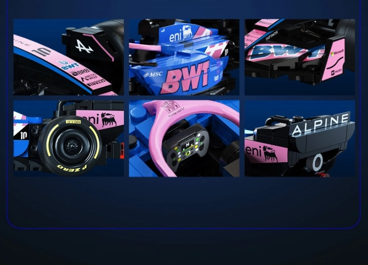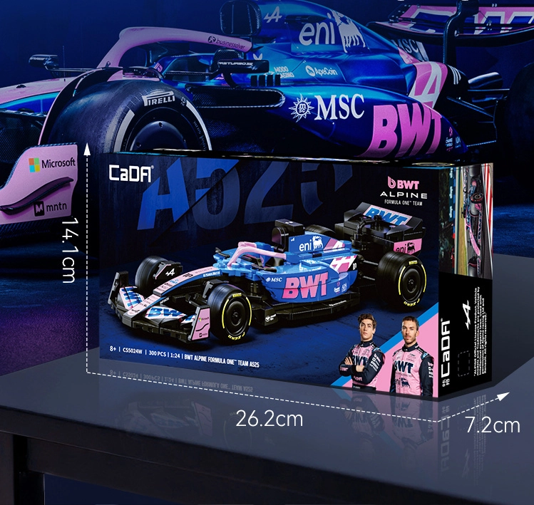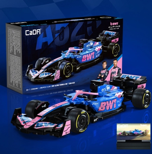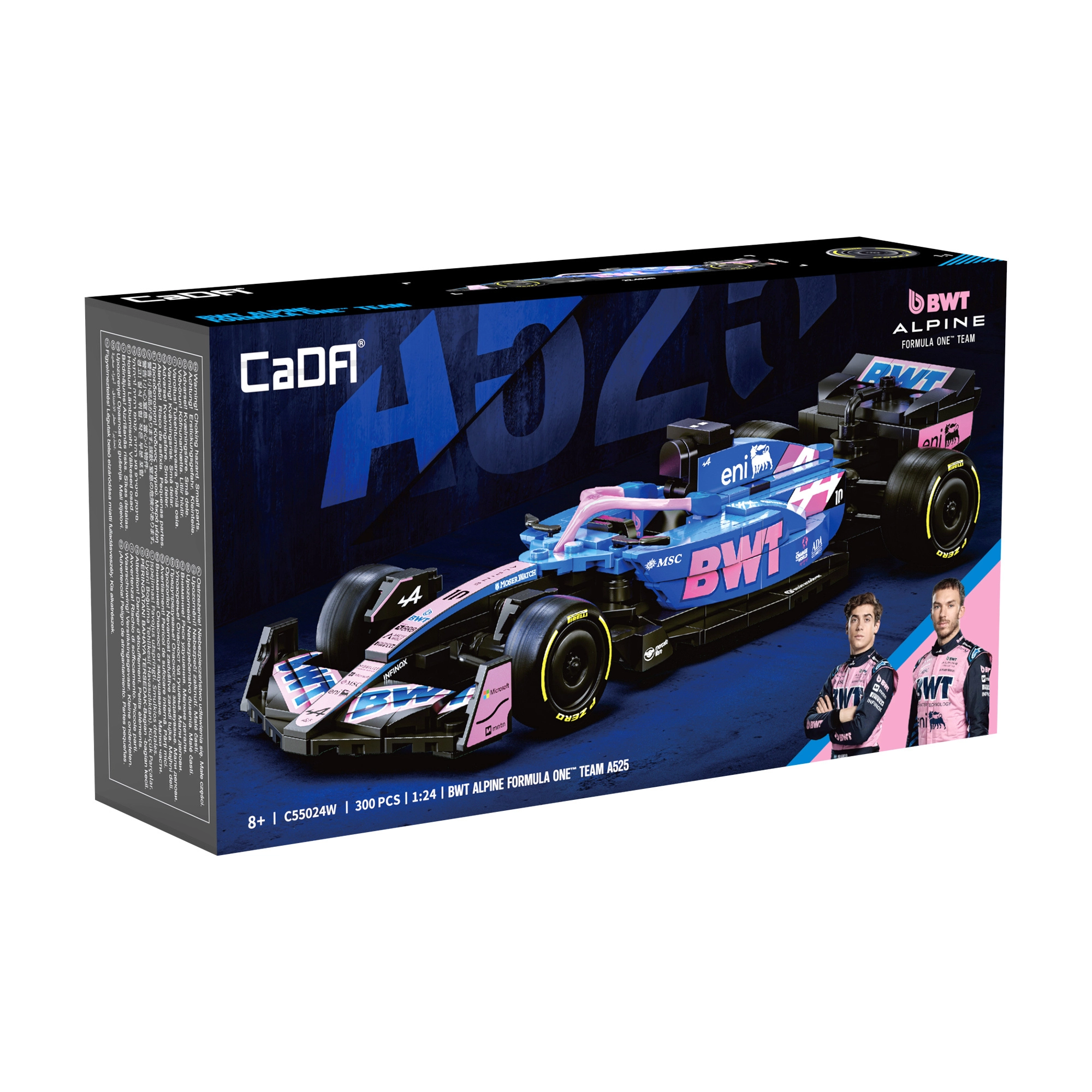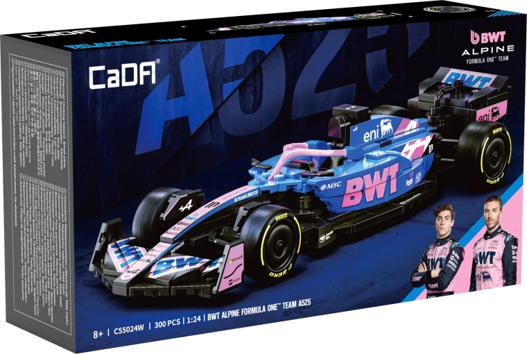 Šis stilingas CaDA konstruktorius tiksliai atkuria agresyvią vienviečio BWT ALPINE F1 A525 siluetą ir ryškias spalvas. Dėl gausių detalių, spaudos ant dalių ir apgalvotos konstrukcijos jis idealiai tinka kaip stilingas eksponatas vitrinai ir kaip įkvėpimas kūrybiškiems žaidimams.
