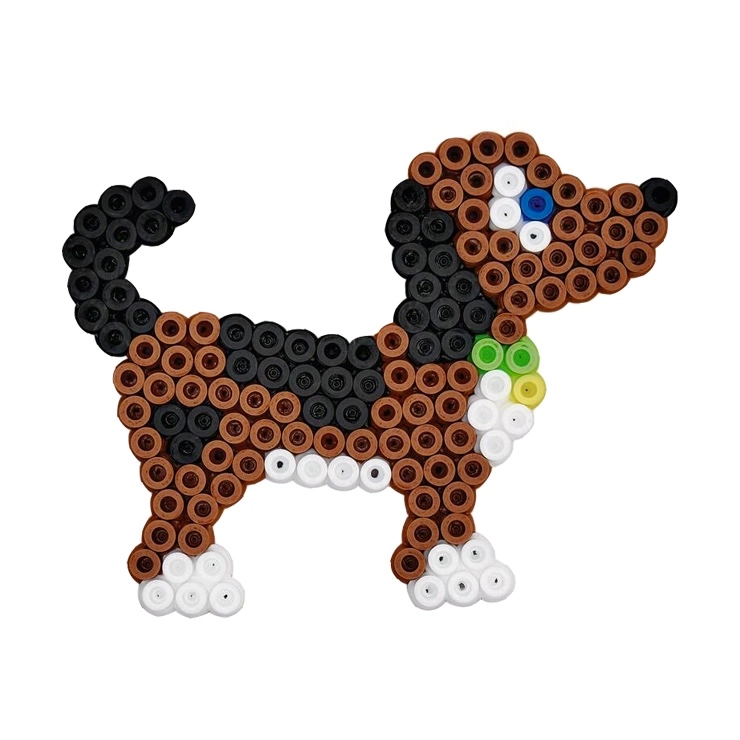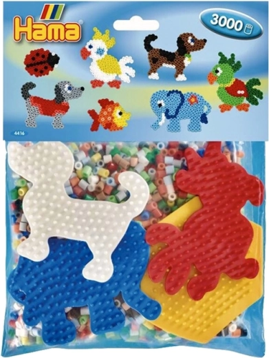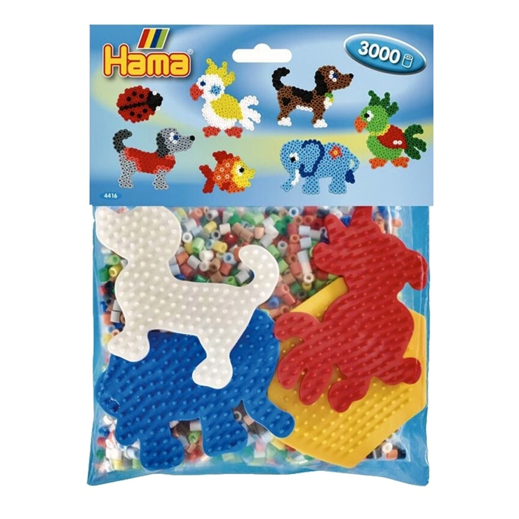 - 3000 vnt. lyginimo karoliukų, 4 padėkliukai (mažas šešiakampis, dramblys, papūga, šuniukas), spalvotas pavyzdys, lygintuvo popierius, instrukcija