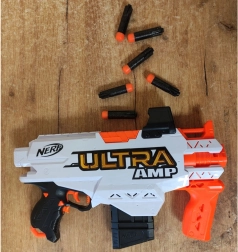 Mėgaukitės dinamišku žaidimu su NERF Ultra AMP blasteriu, kuris derina variklinę pavarą greitam šaudymui, ergonomišką rankeną patikimam suėmimui ir integruotą taikiklį geresniam tikslumui. Kompaktiškas dizainas palengvina valdymą tiek vaikams, tiek suaugusiesiems.