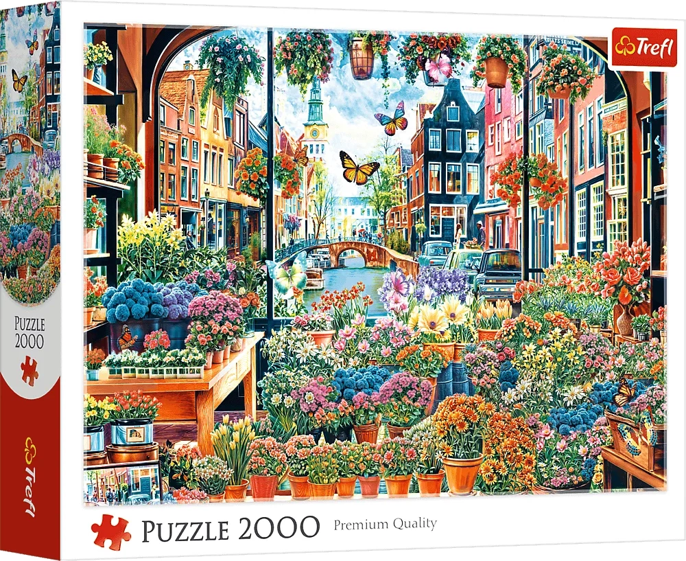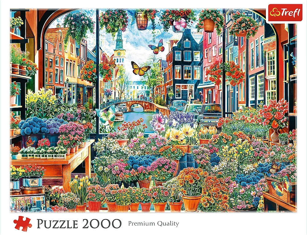 Mėgaukitės poilsiu ir iššūkiu su didelio formato TREFL dėlione iš 2000 detalių, kurioje pavaizduota vaizdinga gėlių parduotuvė Amsterdame. Sudėjus gausite įspūdingą paveikslą, kurio matmenys 96 × 68 cm, puikiai tinkantį įrėminti ir naudoti kaip interjero dekoraciją.