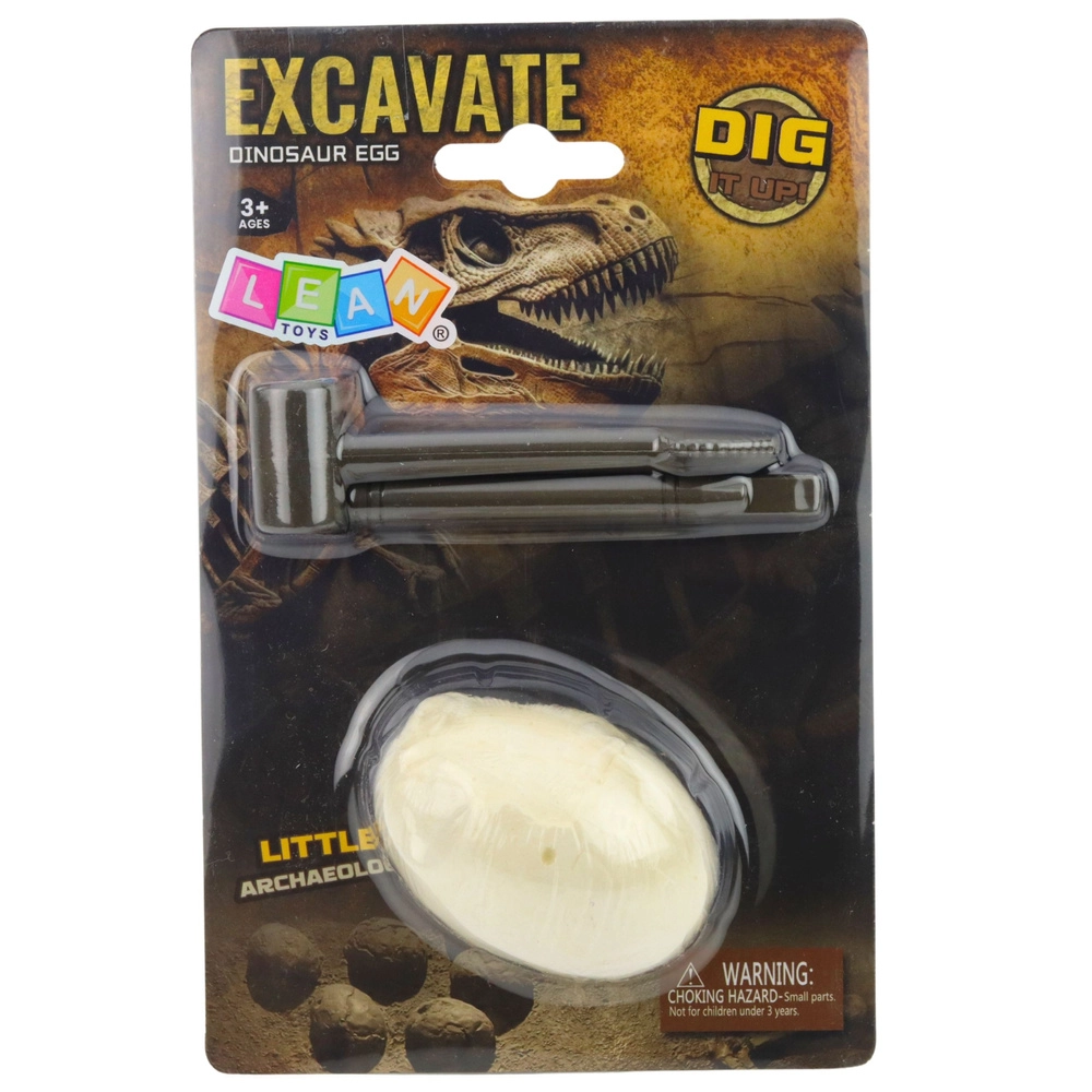 Šis interaktyvus archeologinis rinkinys leidžia vaikams tapti mažaisiais paleontologais. Užduotis – palaipsniui atkasti dinozauro figurėlę, paslėptą gipsiniame kiaušinyje, naudojant pridėtus kaltelį ir plaktuką. Užtenka kiaušinį kelioms minutėms panardinti, leisti masei suminkštėti, tuomet atsargiai šalinti „uolienos“ sluoksnius.