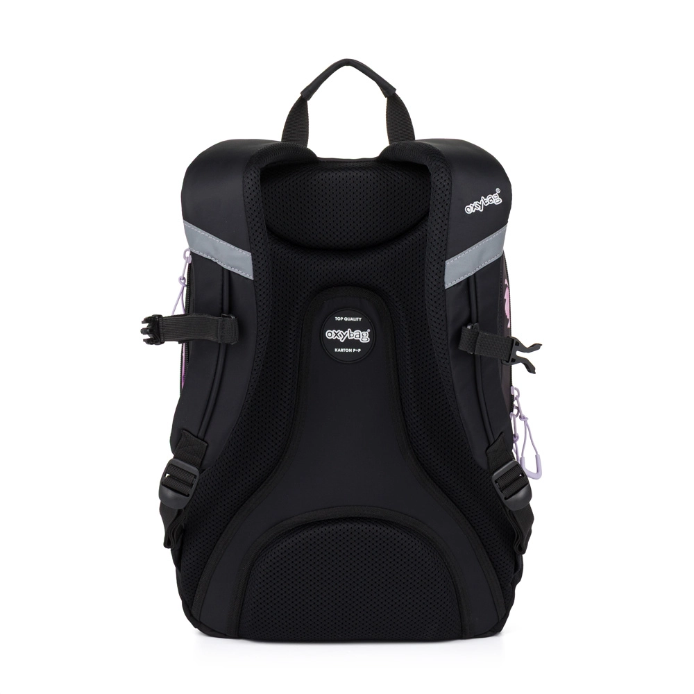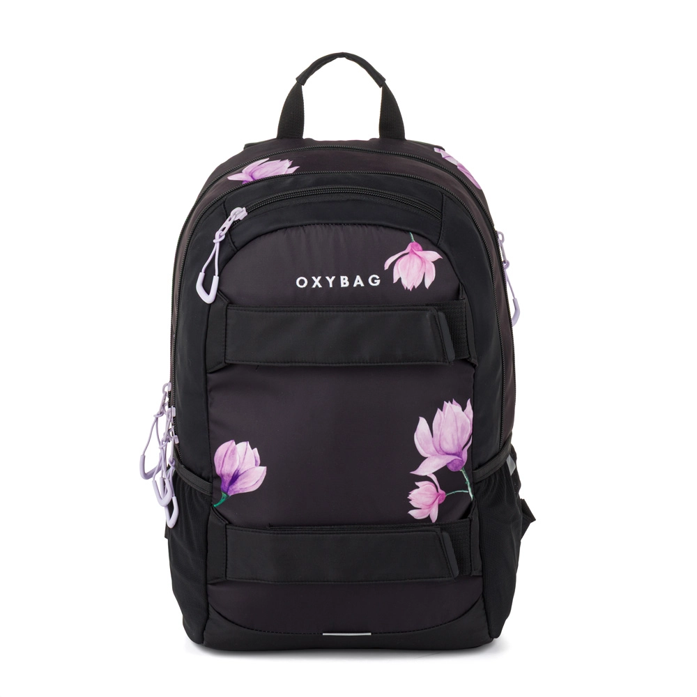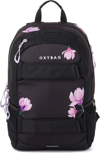 Rinkinys OXY Sport Flowers derina funkcionalumą ir dizainą. Kuprinė turi dvi pagrindines kameras ir priekinę kišenę su tvirtais užtrauktukais, viduje – sutvirtintą skyrelį nešiojamam kompiuteriui, raktų karabiną, mažesnes kišenėles smulkmenoms ir paslėptą galinę kišenę. Kasdieniam patogumui yra šoninė kišenė gertuvei, paminkštintos petnešos ir krūtų dirželis stabilumui. Penalą su užtrauktuku ir elastinga guma patogu naudoti, kad rašymo priemonės būtų tvarkingai savo vietoje.