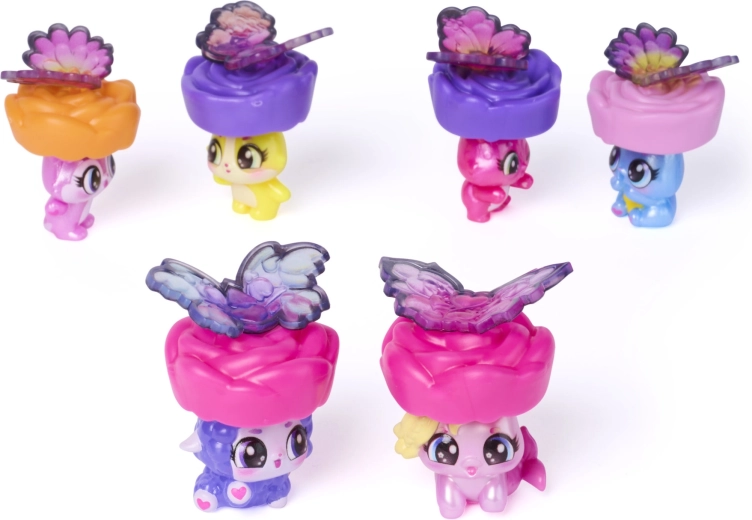 Ženkite į fantazijos pasaulį su kolekciniu rinkiniu Hatchimals Bloomables Bloom Bash. Tereikia įpilti vandens į žaidimų lagaminėlio širdelę, ir žiedai pradės „augti“, kad atskleistų paslėptas figūrėles – nuo mer‑vienaragio iki triušiuko ir šuniuko. Po atskleidimo paverskite lagaminėlį šokių aikštele, prisegkite figūrėlėms spalvingus sparnelius ir papuoškite dangtelį Hatchi‑Pics nuotraukomis.