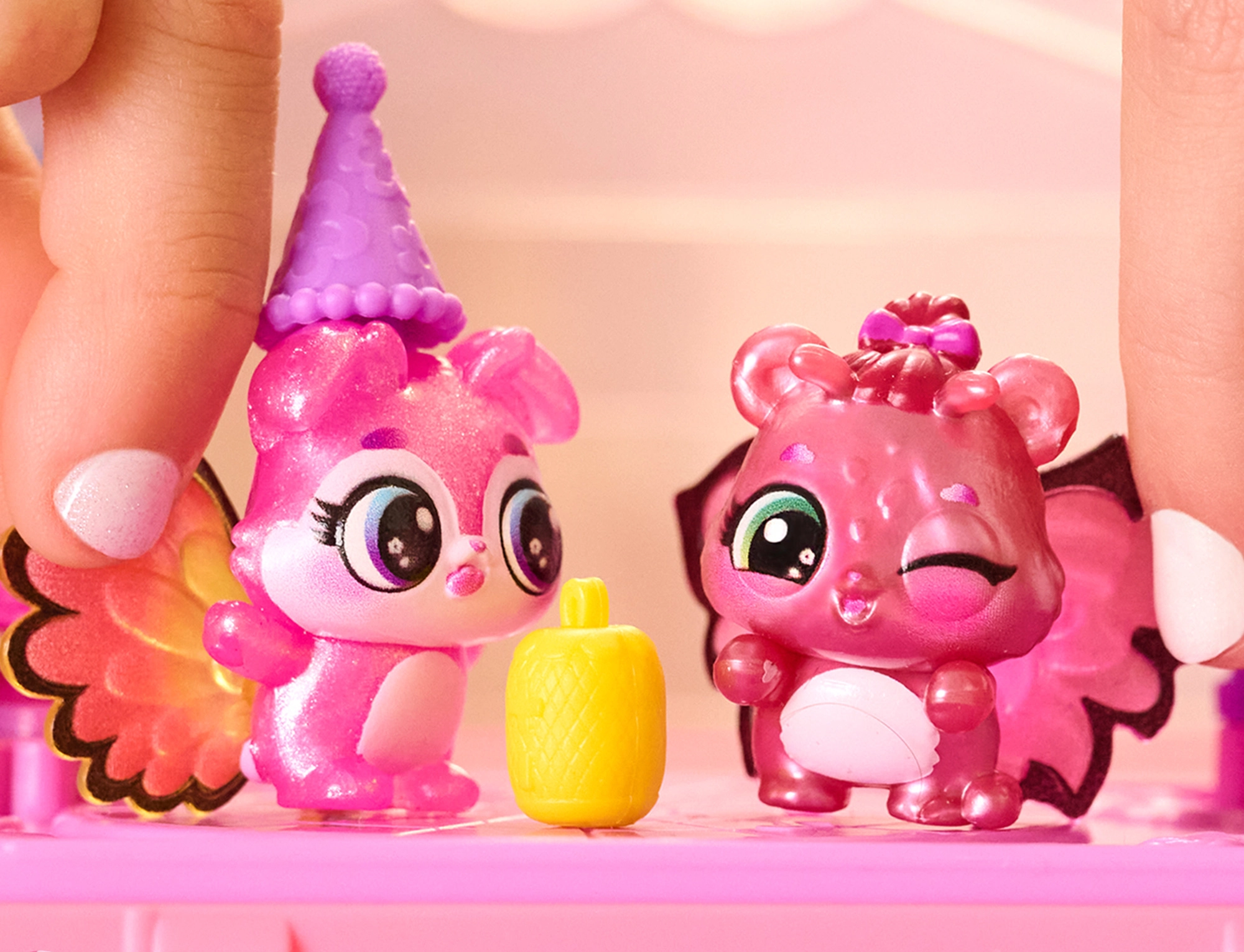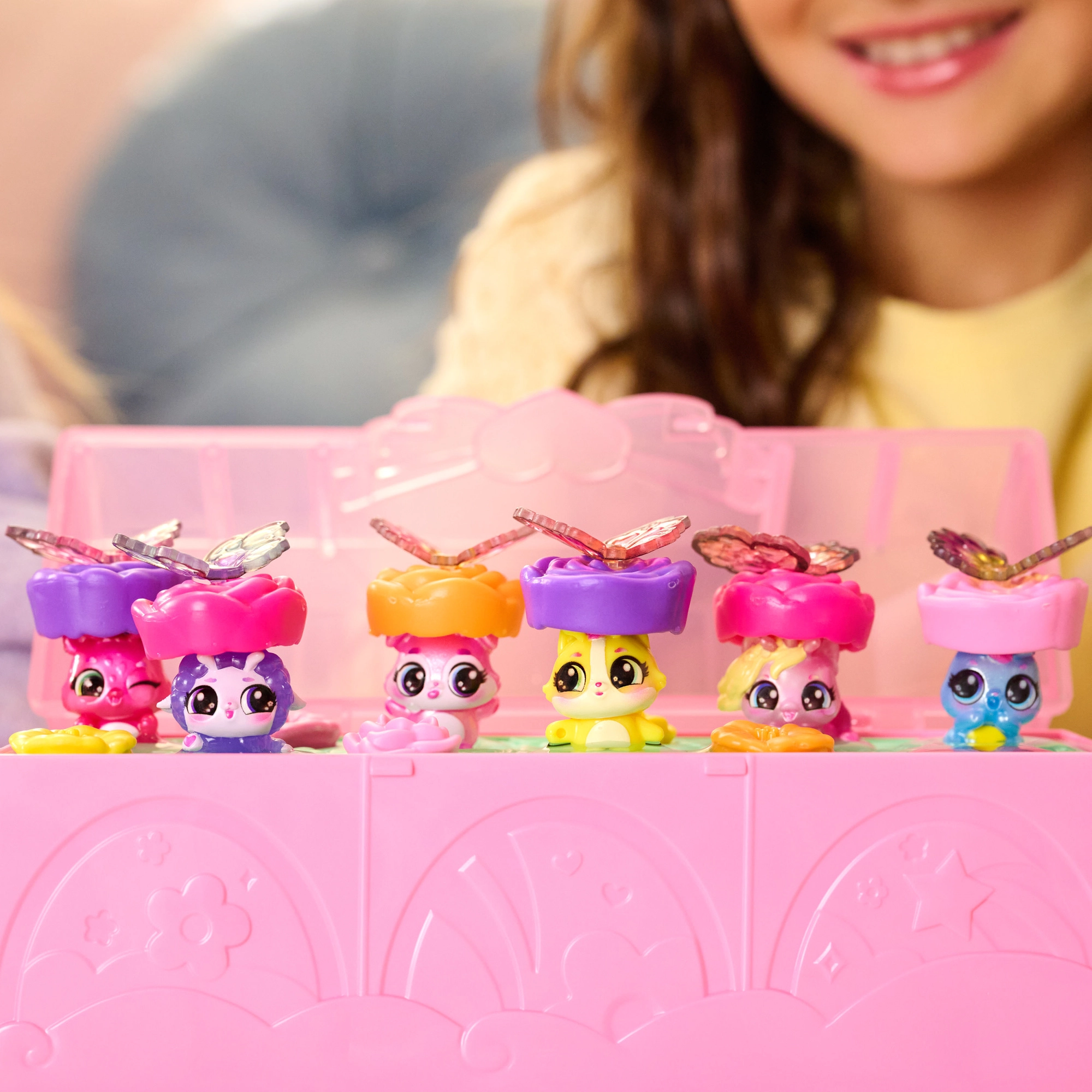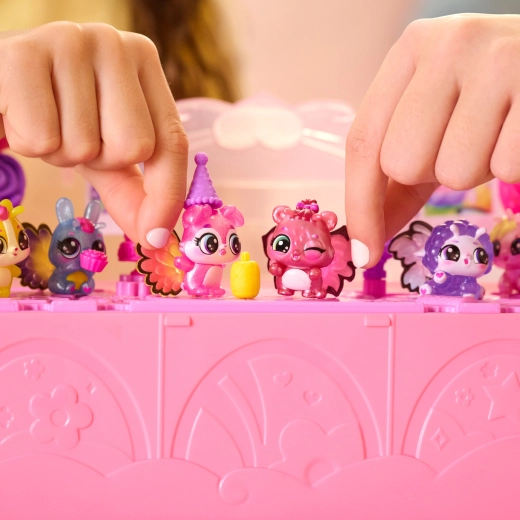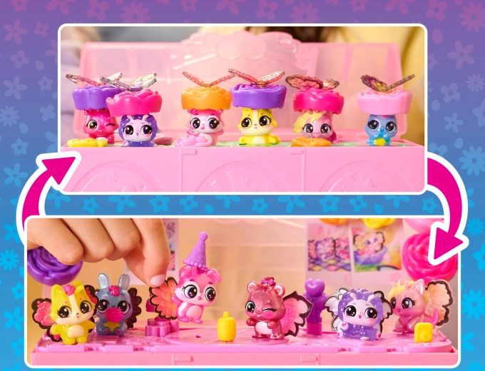 Po atskleidimo paverskite rinkinį šokių aikštele, prisegkite figūrėlėms spalvingus sparnelius ir papuoškite dangtelį Hatchi‑Pics nuotraukomis. Pramogos prasideda!
