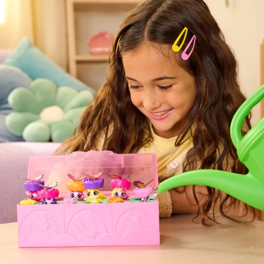 Atraškite Hatchimals Bloomables kolekcijos magiją su žaidimų rinkiniu Bloom Bash. Elegantiškame rožiniame lagaminėlyje, skirtame eksponuoti ir laikyti, jūsų laukia 6 mielos figūrėlės, daugiau nei 15 priedų ir linksmas vandens „žydėjimo“ atskleidimas. Uždėkite sparnelius, išskleiskite šokių aikštelę ir surenkite stebuklingą sodo vakarėlį – vėl ir vėl.
