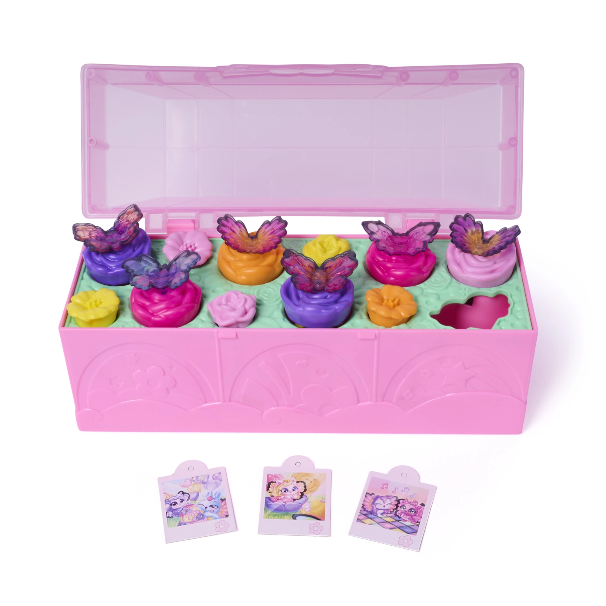 Įpilkite vandens į lagaminėlio širdelę ir stebėkite, kaip žiedai „išauga“ ir atskleidžia mielus Bloomables. Stebuklinga siurprizo akimirka džiugins kiekvieno žaidimo metu.