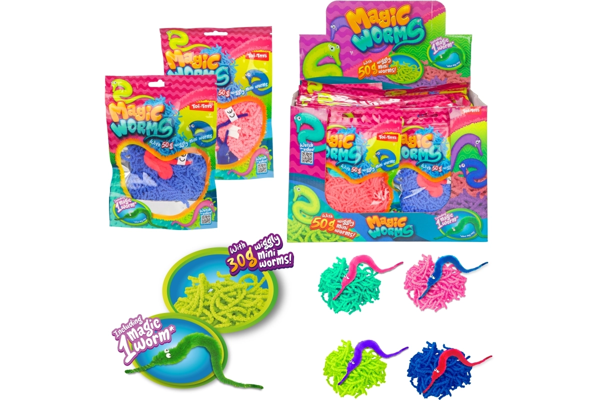 Atraskite 15 cm ilgio magiškus kirmėliukus, kurie dėl beveik nematomos siūlo linksmai rangosi ir slysta tarp pirštų. Nustebinkite šeimą ir draugus paprastu magijos triuku – tik jūs žinote, kaip kirmėliukas paslaptingai juda! Rinkinyje siūlomos įvairios spalvos (pagal prieinamumą), jis yra minkštas ir pūkuotas ir turi QR kodą su vaizdo instrukcija. Tinka nuo 3 metų.