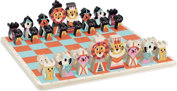 Pristatome medinius šachmatus su gyvūnų motyvais, puikiai tinkančius vaikams nuo 6 metų. Šis žaidimas ne tik lavina strateginį mąstymą, bet ir ugdo pojūčius dėl ryškių spalvų ir žaismingo dizaino. Šachmatų lenta ir figūrėlės iliustruotos talentingos švedų menininkės Ingelos P. Arrhenius, kurios aistra retro stiliui atsispindi kiekvienoje šio rinkinio detalėje.