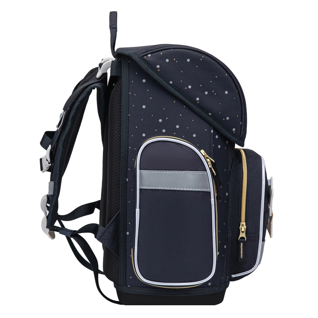 Vandeniui atspari medžiaga, tvirtas dugnas ir kokybiški užtrauktukai saugo mokyklines priemones bet kokiu oru. Išmanus vidinės erdvės suskirstymas su organizatoriumi, pamokų tvarkaraščiu ir sutraukiamu dirželiu laiko sunkesnes knygas arčiau nugaros geresniam stabilumui. Izoliuota priekinė kišenė ir dvi šoninės kišenės talpina užkandį ir gertuvę. Nepritrūksta ir atšvaitinių elementų saugumui prieblandoje.