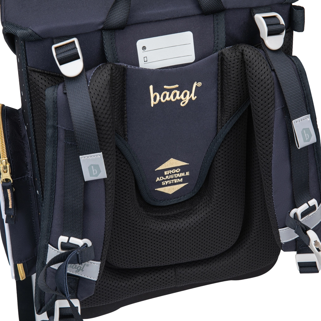 Kuprinė BAAGL Ergo Unicorn Gold sukurta 1 klasės vaikams. Mažas svoris, neviršijantis 1200 g, ir tvirta konstrukcija su sveikai suformuota nugarėle užtikrina patogų nešiojimą be bereikalingos apkrovos. Dėl ERGO Adjustable System ir pilnai reguliuojamų diržų kuprinė idealiai prisitaiko prie vaiko kūno.