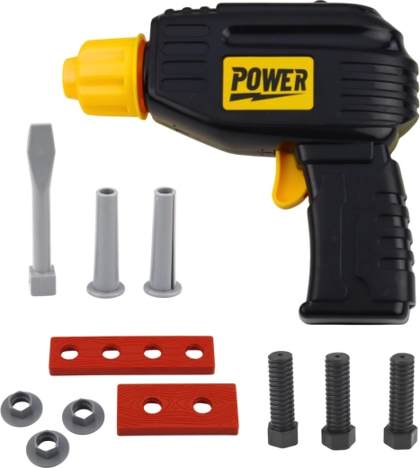 Vaikiškas gręžtuvas, maitinamas 2× AA (rinkinyje nėra), imituoja varžtų sukimą ir motyvuoja vaikus kūrybiškam žaidimui bei smulkiosios motorikos lavinimui.