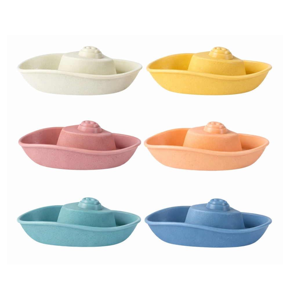 Šeši lengvi plastikiniai laiveliai švelnių spalvų stabiliai plūduriuoja vandens paviršiuje ir puikiai tinka pylimo pratyboms, gyvūnėlių gabenimui ir vaizduotės žaidimams.