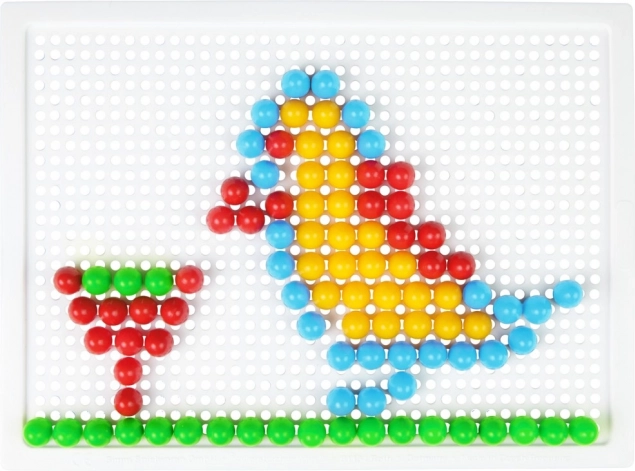 LENA mozaika su 100 spalvotų smeigtukų – puikus pasirinkimas kūrybiniam žaidimui namuose ar darželyje. Dėl paprastos smeigtukų segiojimo sistemos į perforuotą lentą vaikai lavina koordinaciją ir kantrybę, kurdami savo motyvus – gyvūnus, transportą ar fantazinius raštus.