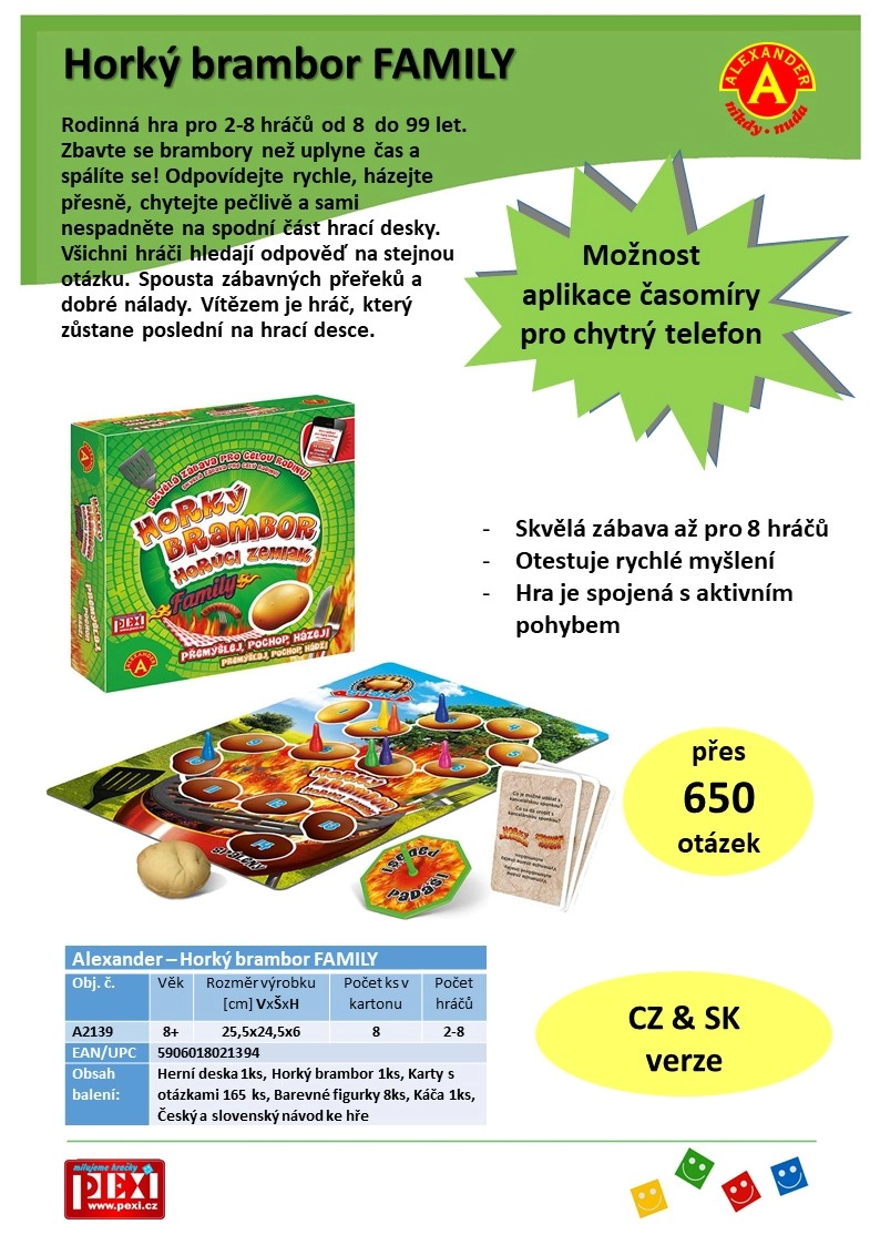 Rinkinyje: žaidimo lenta, 165 klausimų kortos, 8 spalvotos figūrėlės, suktukas, instrukcija lietuvių ir slovakų kalbomis.