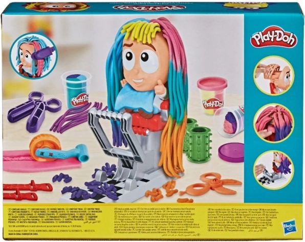Su šiuo Play-Doh kirpėjo rinkiniu pašėlusios šukuosenos gimsta akimirksniu. Pasodinkite figūrėlę į kėdę, paspauskite ir iš galvos „išaugs“ spalvingi plaukai, kuriuos galėsite toliau kirpti, šukuoti ir puošti. Daugiaspalvė modelino masė ir linksmi priedai paverčia kiekvieną kirpimą nauja istorija, pilna fantazijos.