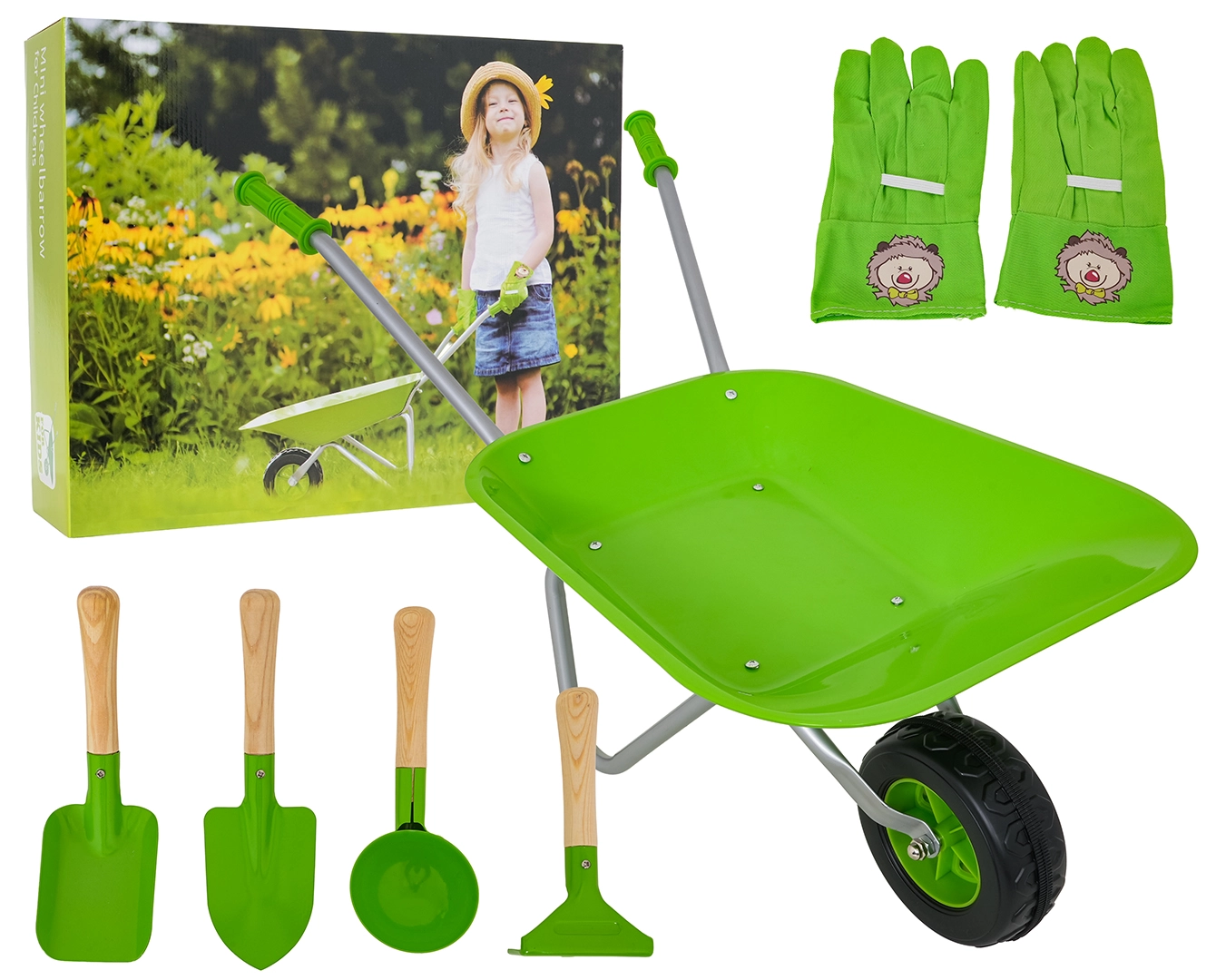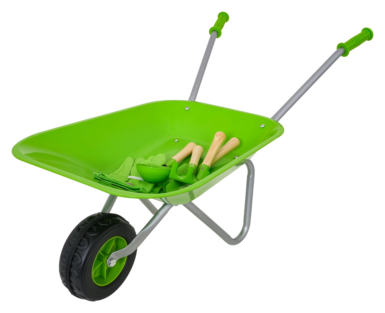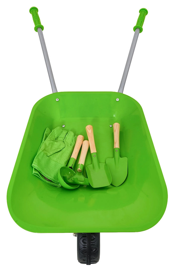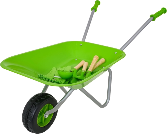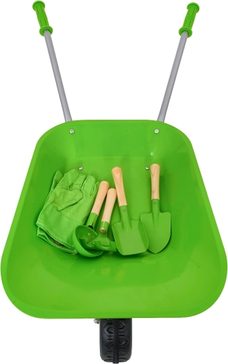 Skatinkite vaikų smalsumą ir sumanumą su rinkiniu, kuriame yra viskas, ko reikia pirmiesiems žingsniams sodininkaujant. Tvirtas žalias karutis ir keturi kokybiški rankiniai įrankiai leis mažiesiems padėjėjams kasti, semti ir grėbti žemę, persodinti augalus ir pervežti medžiagas. Taip pat pridedamos vaikiškos pirštinės rankų apsaugai.