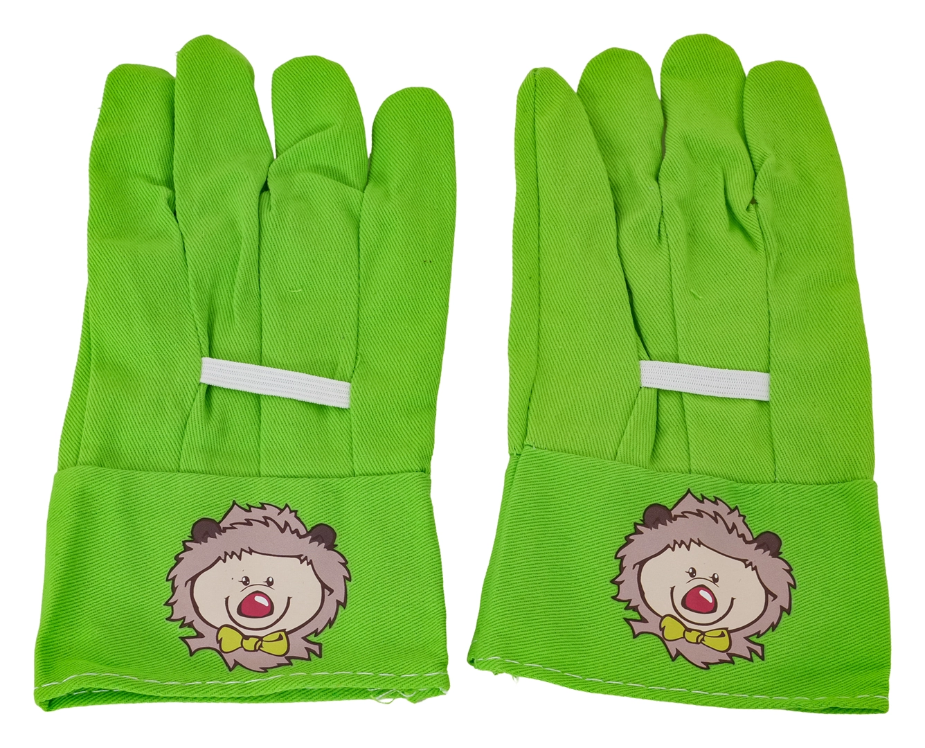 Elastingos vaikiškos pirštinės su linksmu ežio motyvu saugo rankas nuo purvo ir smulkių nubrozdinimų. Puikiai tinka darbams sode ir žaidimams lauke.