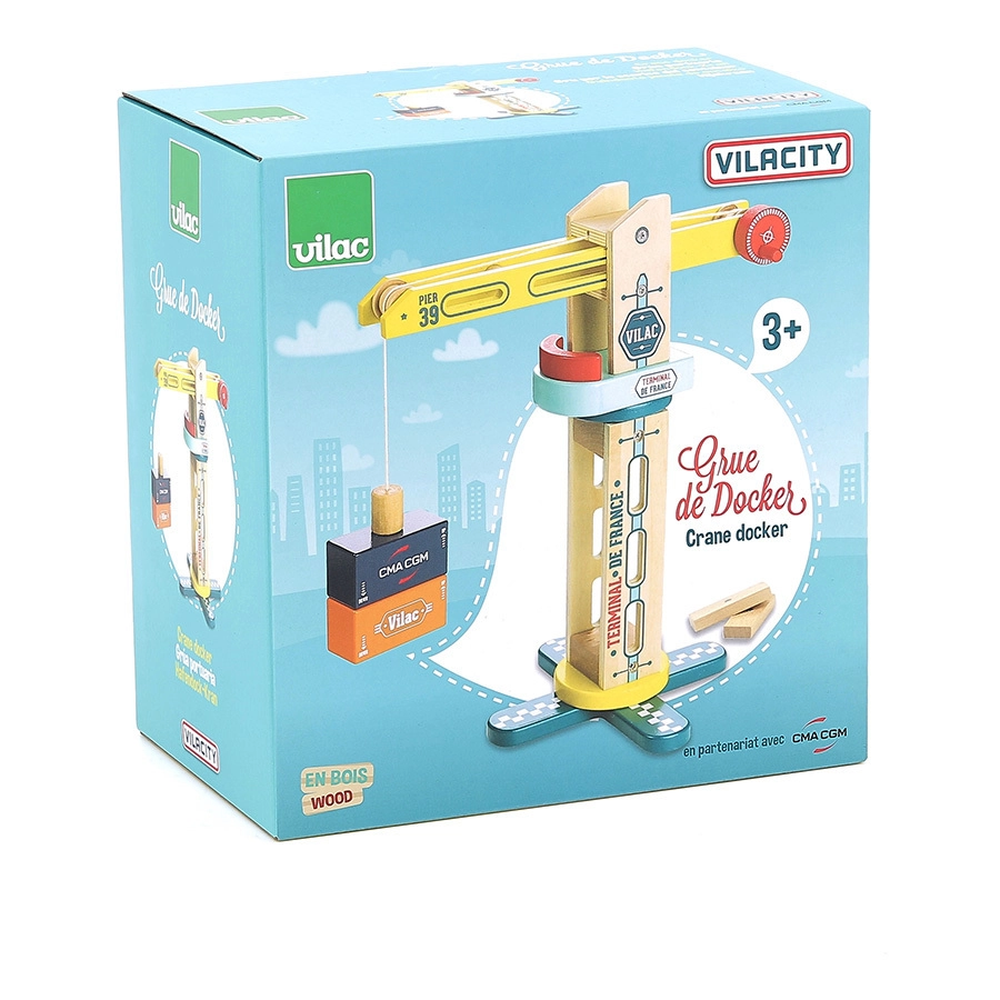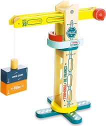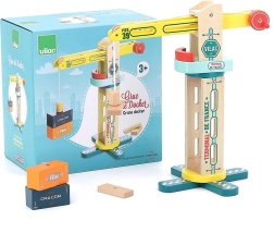 Medinis uosto kranas Vilac Vilacity – idealus priedas visiems mažiesiems statytojams ir traukinių trasų mėgėjams. Dėl magnetinės sistemos vaikai lengvai sugriebia ir perkelia krovinį, o tvirta konstrukcija užtikrina sklandų sukimąsi ir judėjimą keliomis kryptimis.