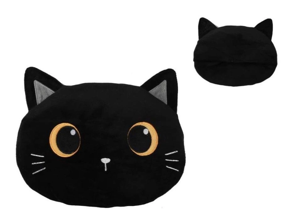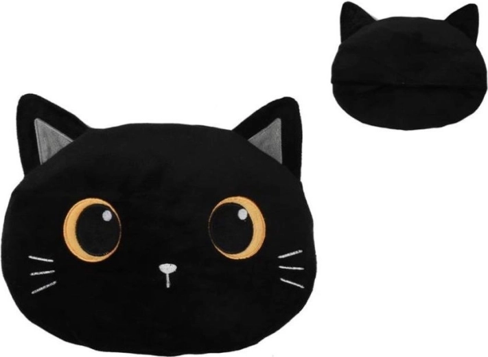 Minkštas paviršius, siuvinėtų katės veido detalių akcentai ir maloni atrama ilsintis ant sofos ar lovoje.