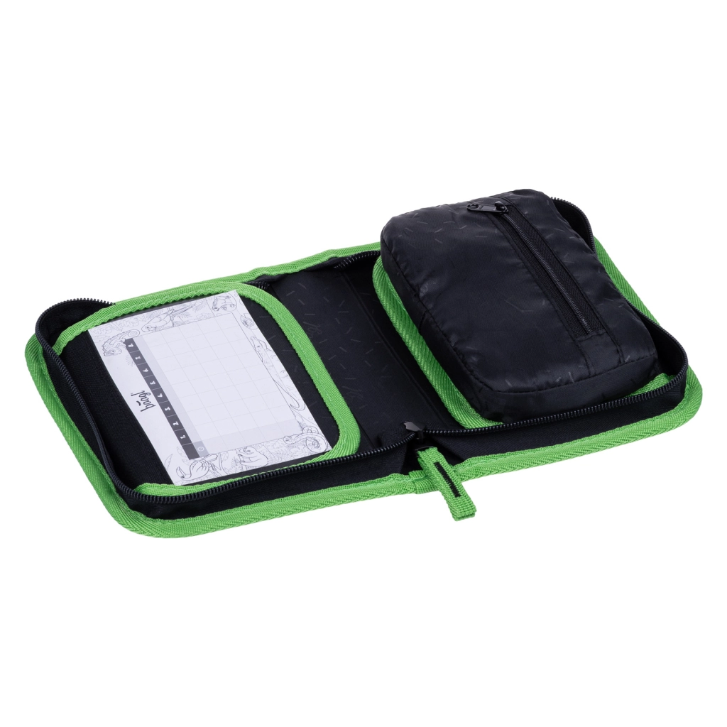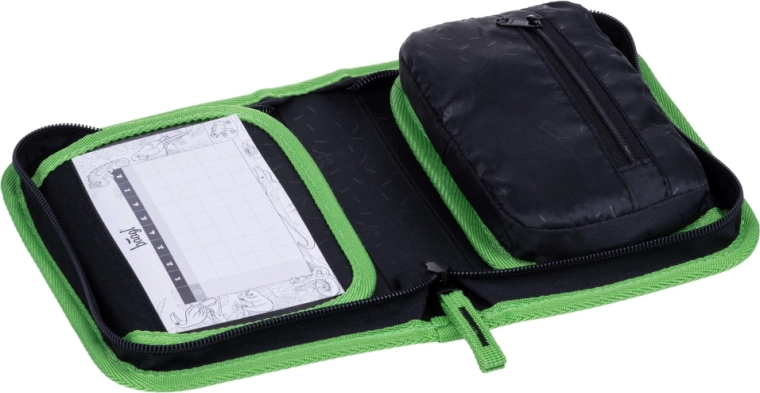 Kokybiškas YKK užtrauktukas užtikrina ilgą tarnavimo laiką net kasdien naudojant. Viduje yra kišenėlė smulkmenoms, langelis tvarkaraščiui ir tvirtos gumelės, saugiai laikančios net ir trikampius pieštukus bei flomasterius. Penalas tiekiamas be užpildo ir pagamintas iš perdirbtos medžiagos – tausojantis pasirinkimas tėvams ir planetai.